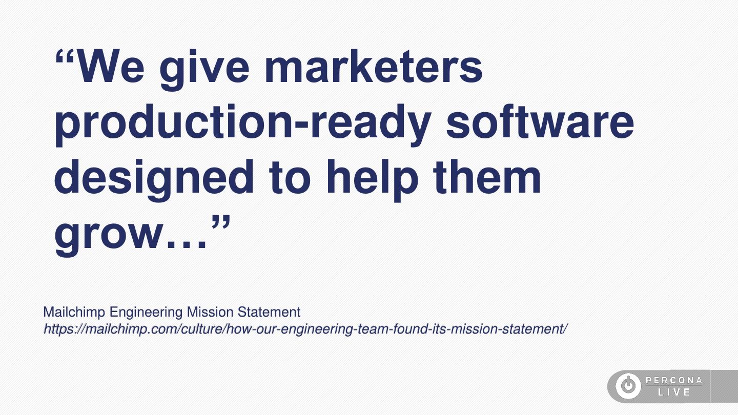 4 . “We give marketers production-ready software designed to help them grow…” Mailchimp Engineering Mission Statement https://mailchimp.com/culture/how-our-engineering-team-found-its-mission-statement/