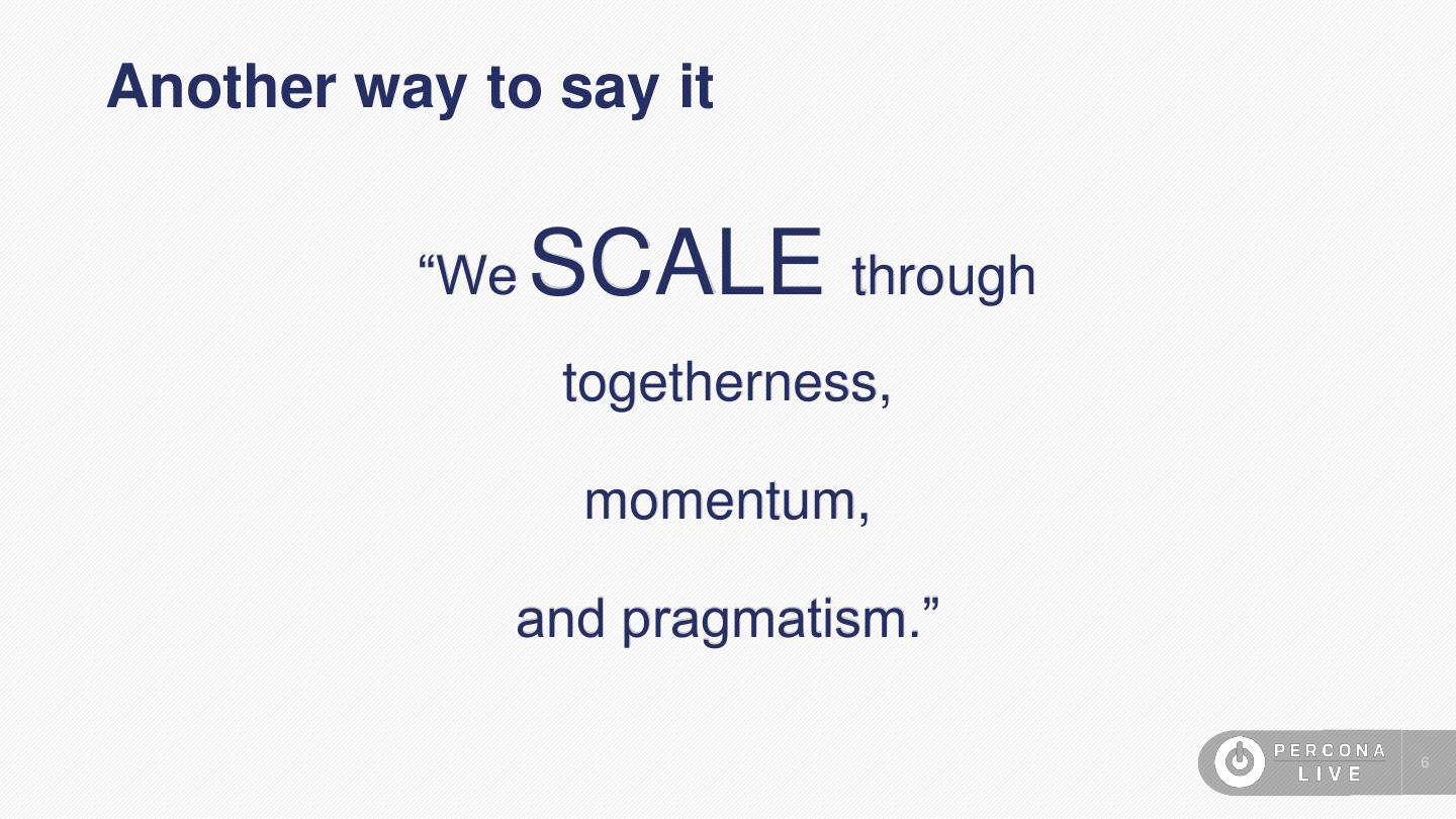 6 .Another way to say it “We SCALE through togetherness, momentum, and pragmatism.” 6
