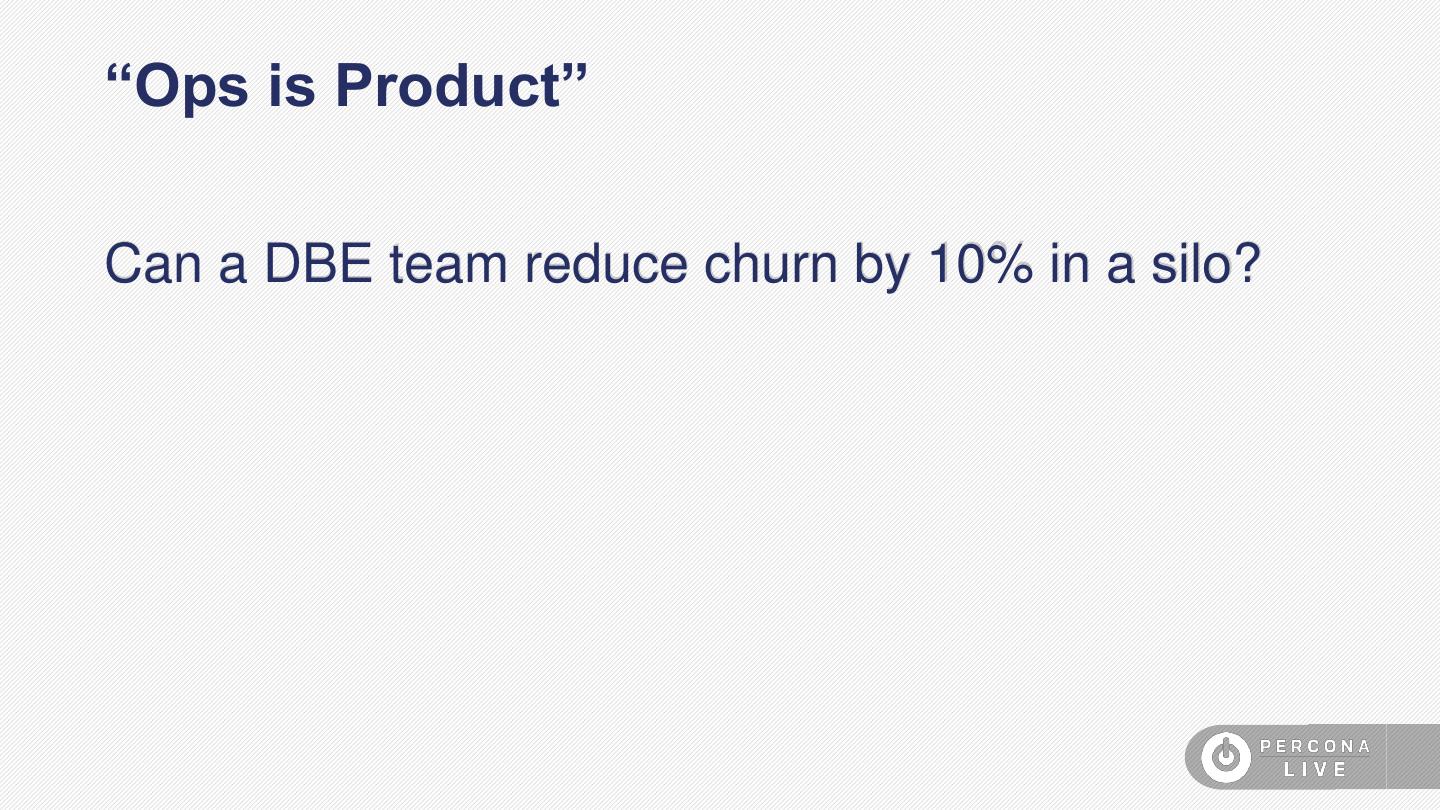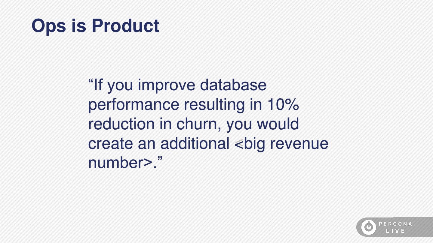 14 .Ops is Product “If you improve database performance resulting in 10% reduction in churn, you would create an additional <big revenue number>.”