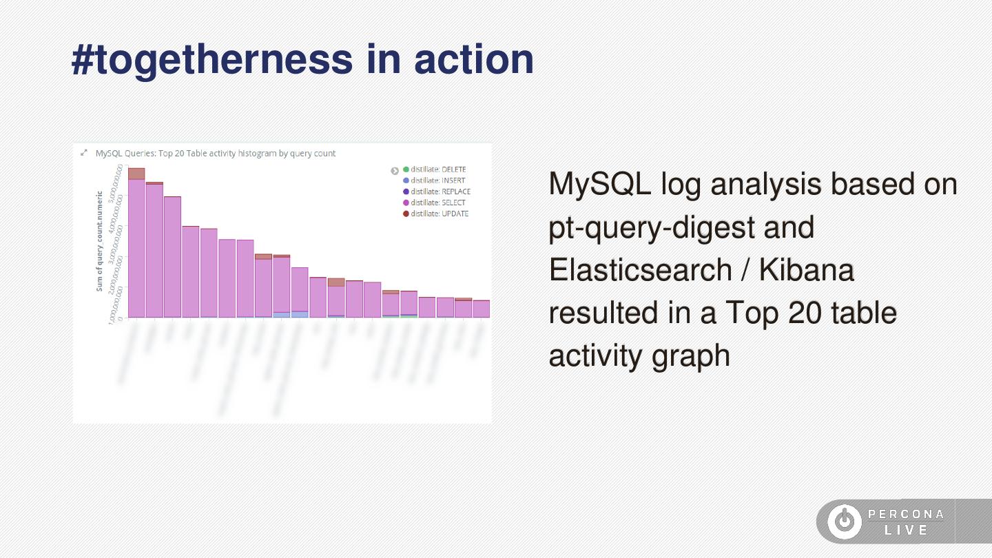 21 .#togetherness in action MySQL log analysis based on pt-query-digest and Elasticsearch / Kibana resulted in a Top 20 table activity graph