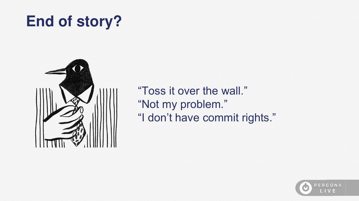 22 .End of story? “Toss it over the wall.” “Not my problem.” “I don’t have commit rights.”