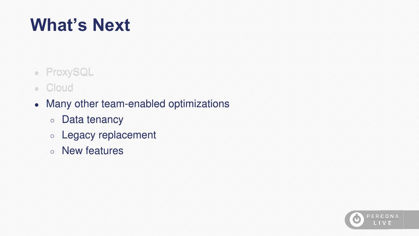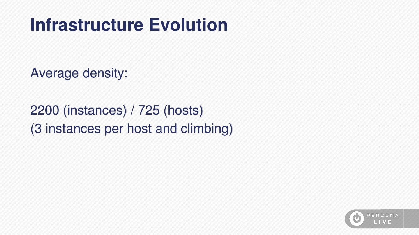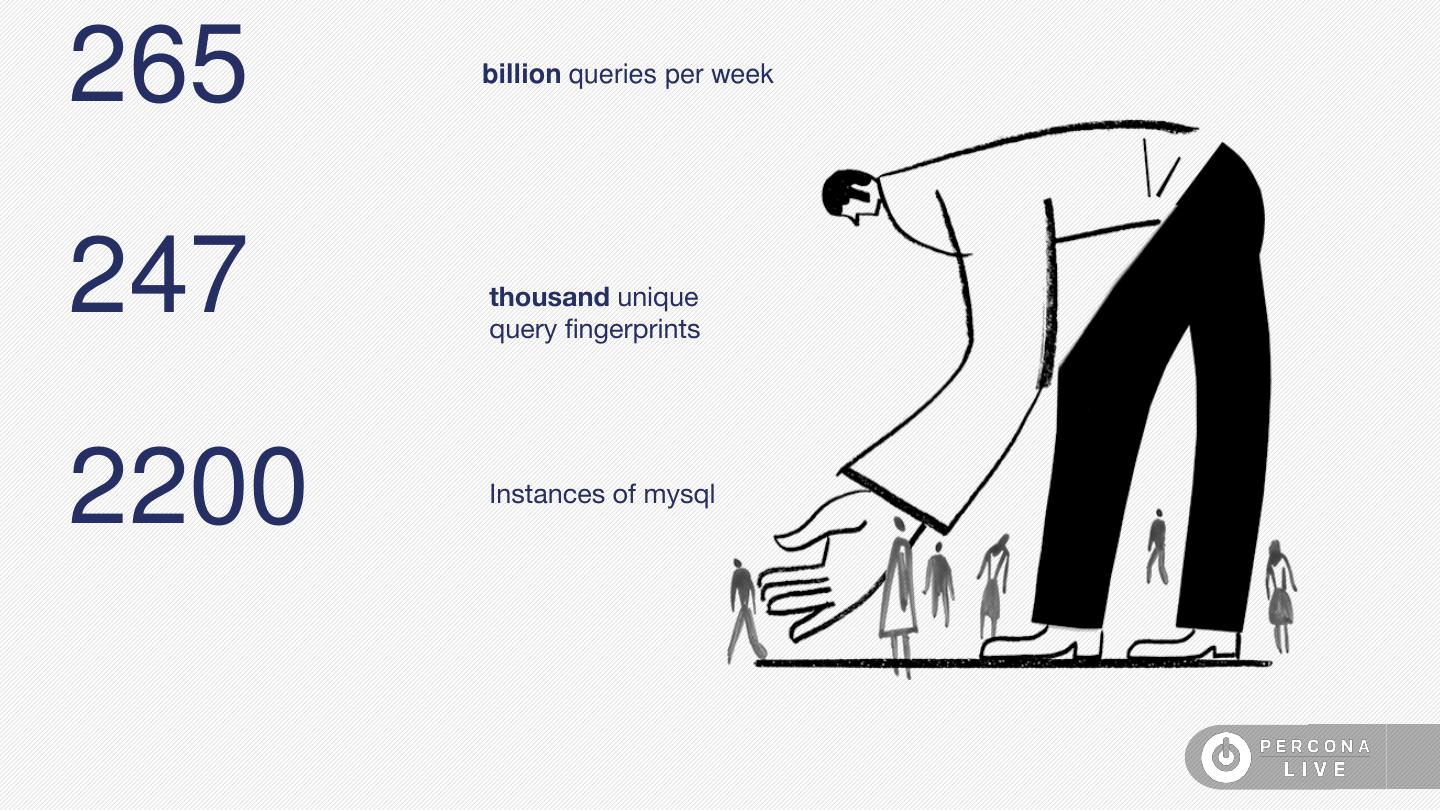 27 .265 billion queries per week 247 thousand unique query fingerprints 2200 Instances of mysql