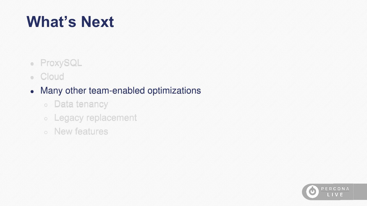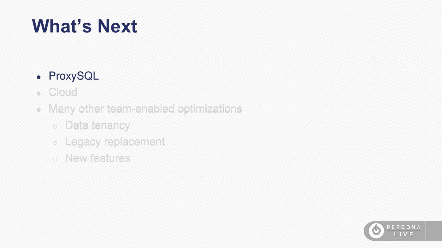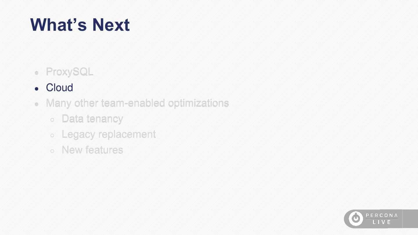 27 .265 billion queries per week 247 thousand unique query fingerprints 2200 Instances of mysql