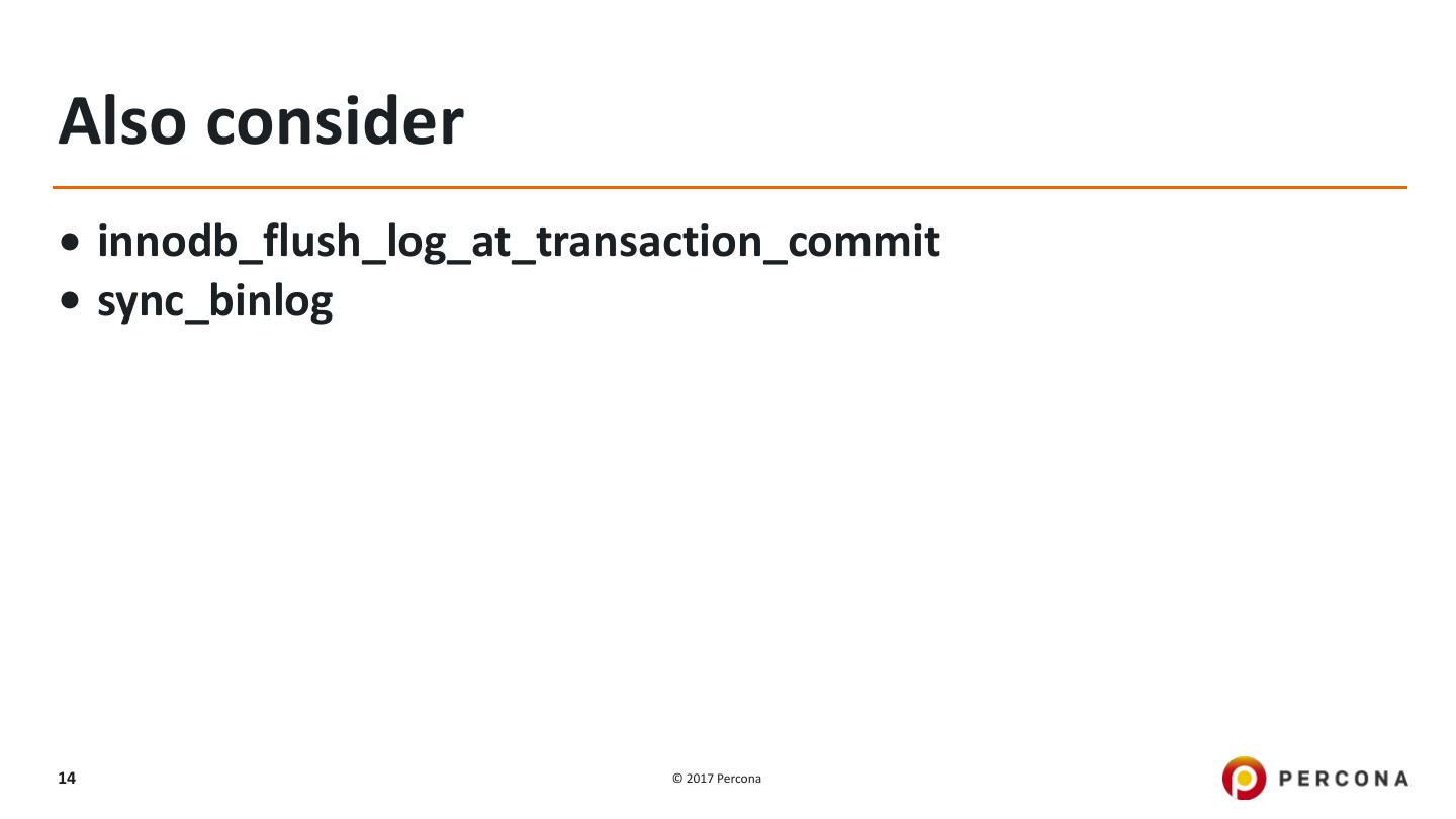 14 .Also consider • innodb_flush_log_at_transaction_commit • sync_binlog 14 © 2017 Percona