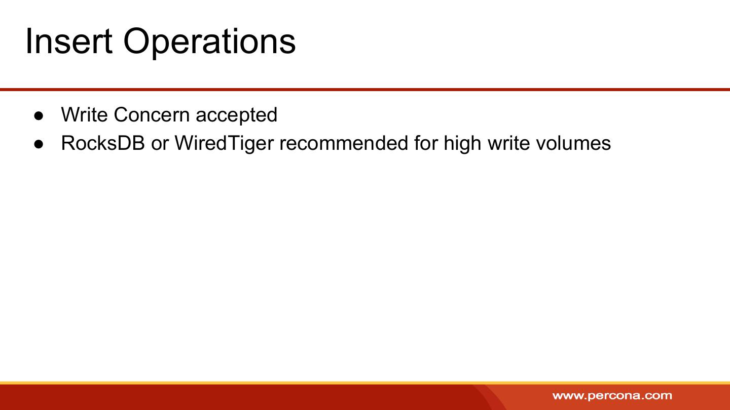 13 .Insert Operations ● Write Concern accepted ● RocksDB or WiredTiger recommended for high write volumes