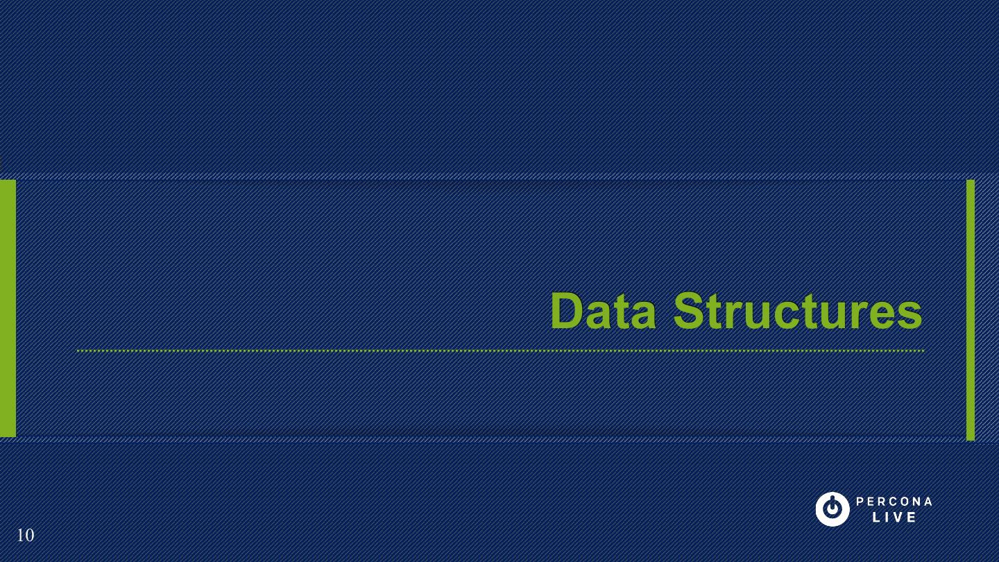 9 . Innodb Basics •B+Tree Based “Traditional” •ACID Transactions Storage Engine •MVCC •OLTP Optimized 9 9