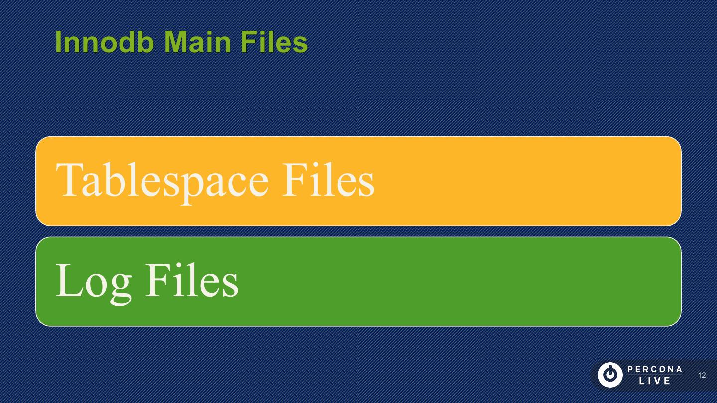 12 .Innodb Main Files Tablespace Files Log Files 12