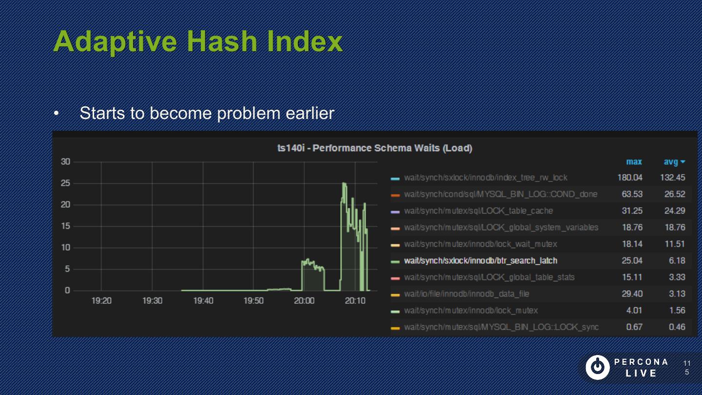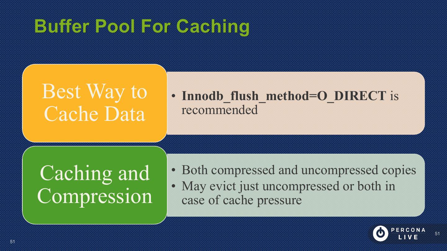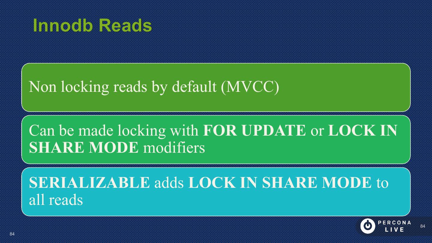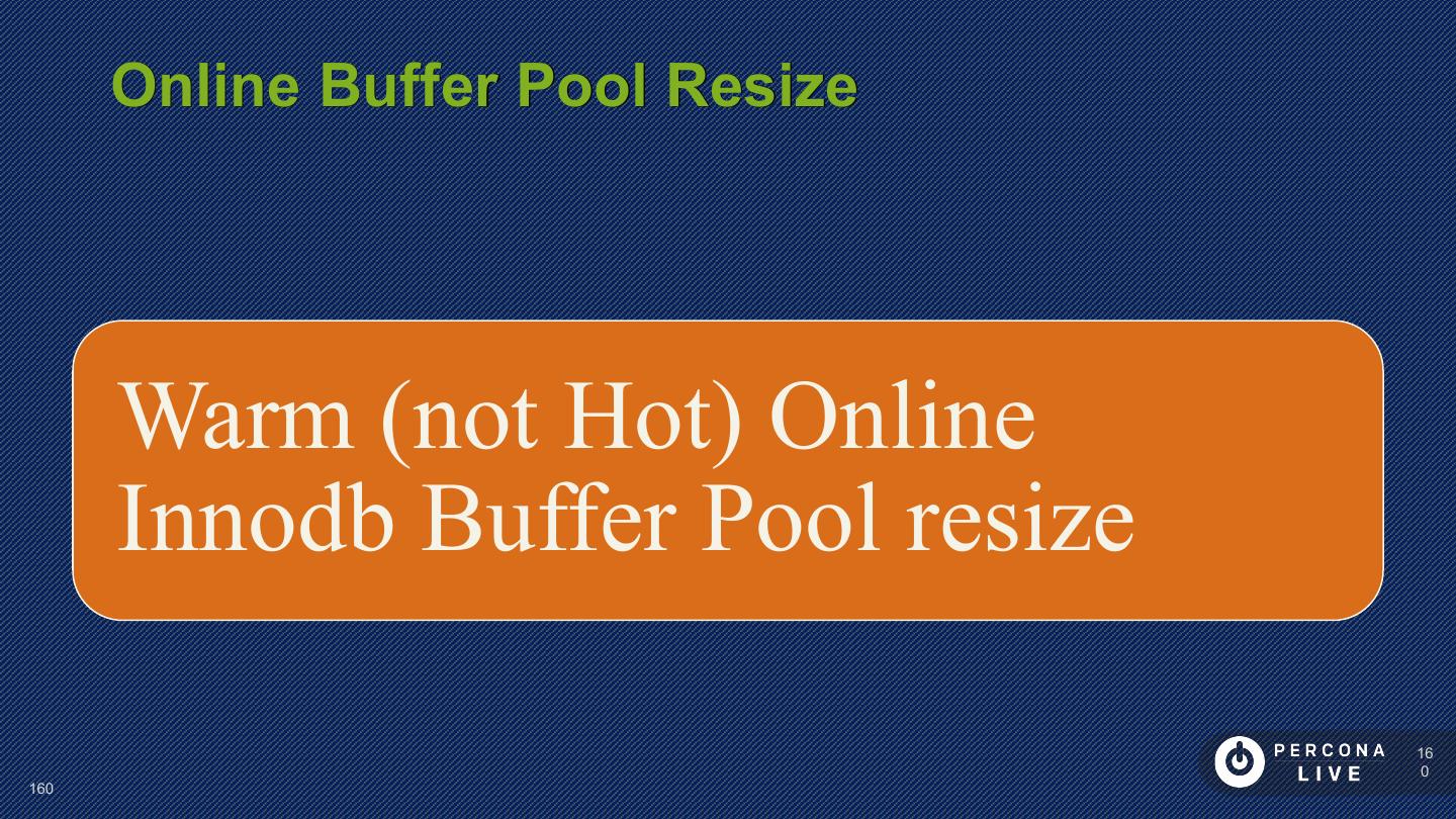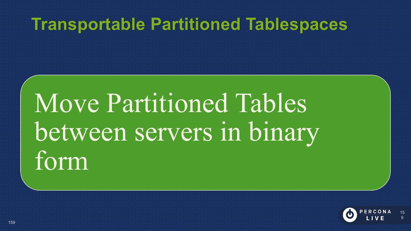 14 . Performance Considerations Innodb_file_per_table is default in MySQL 5.6+ Can cause problems with many tables Can cause problems with many CREATE/DROP/TRUNCATE Improved in MySQL 5.7 14 14