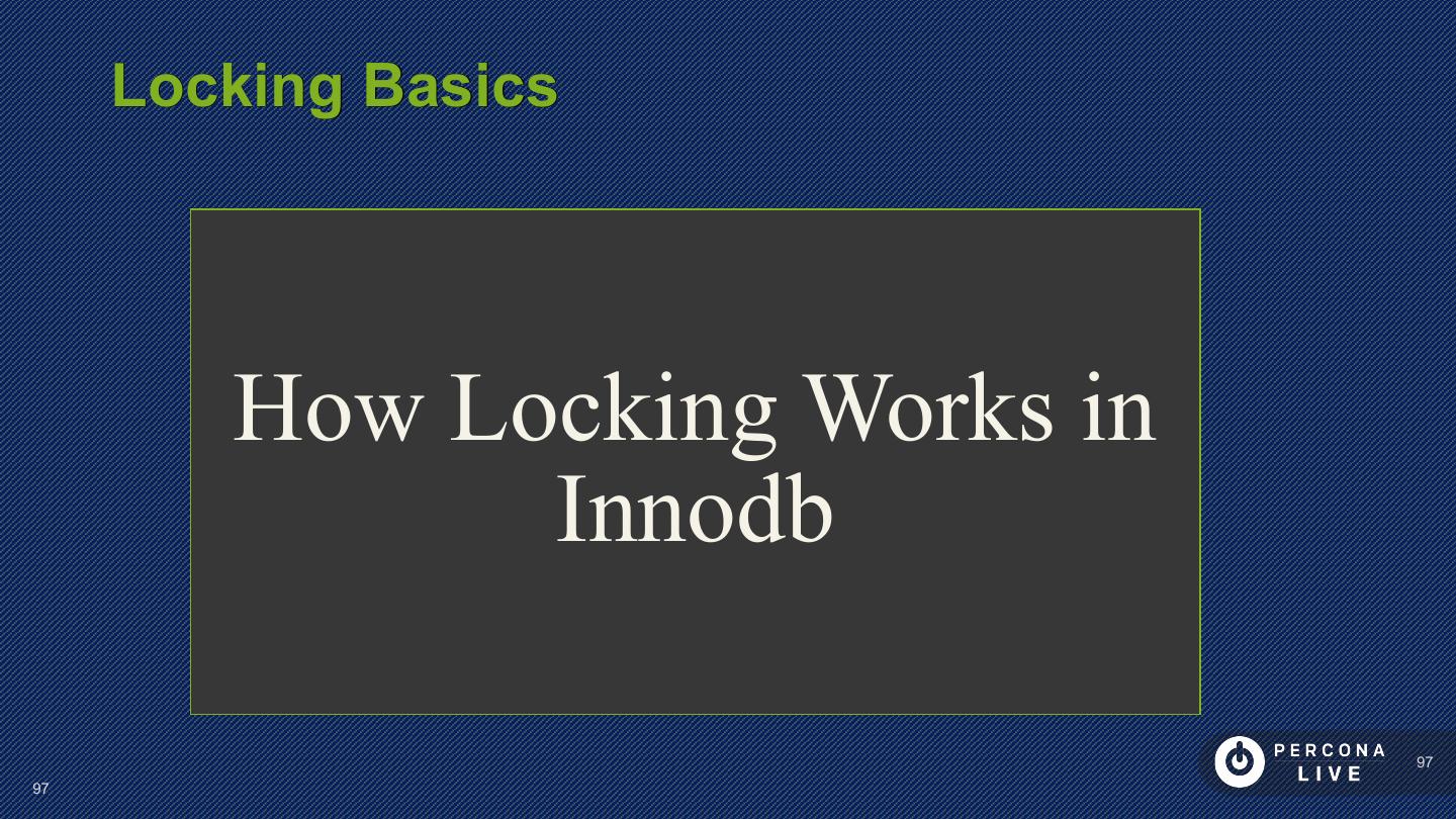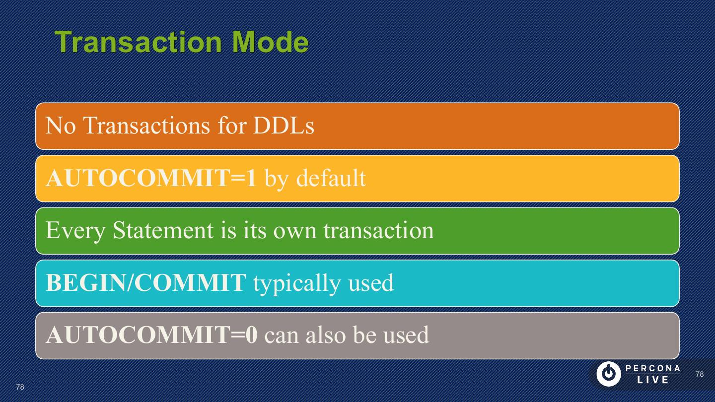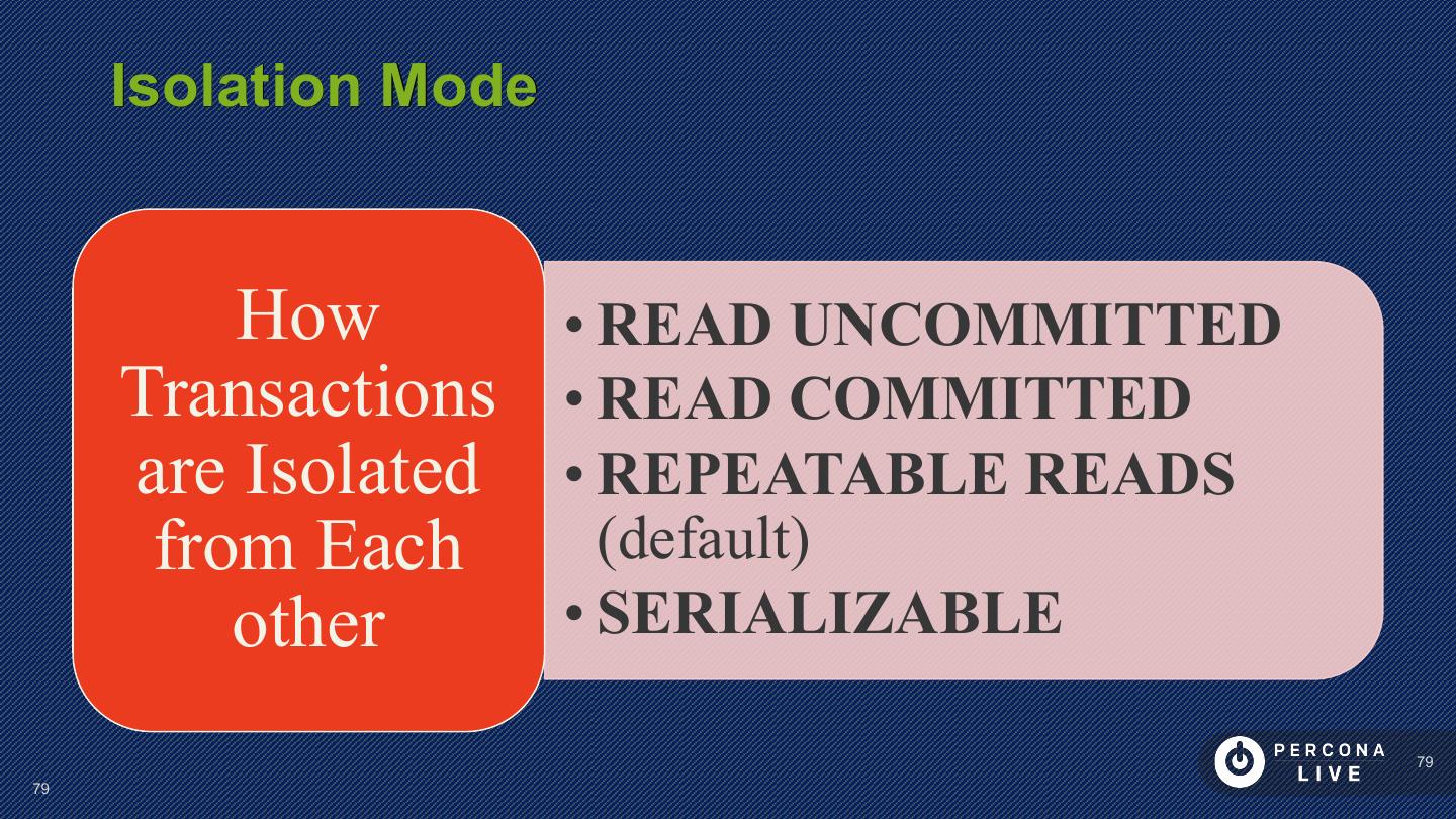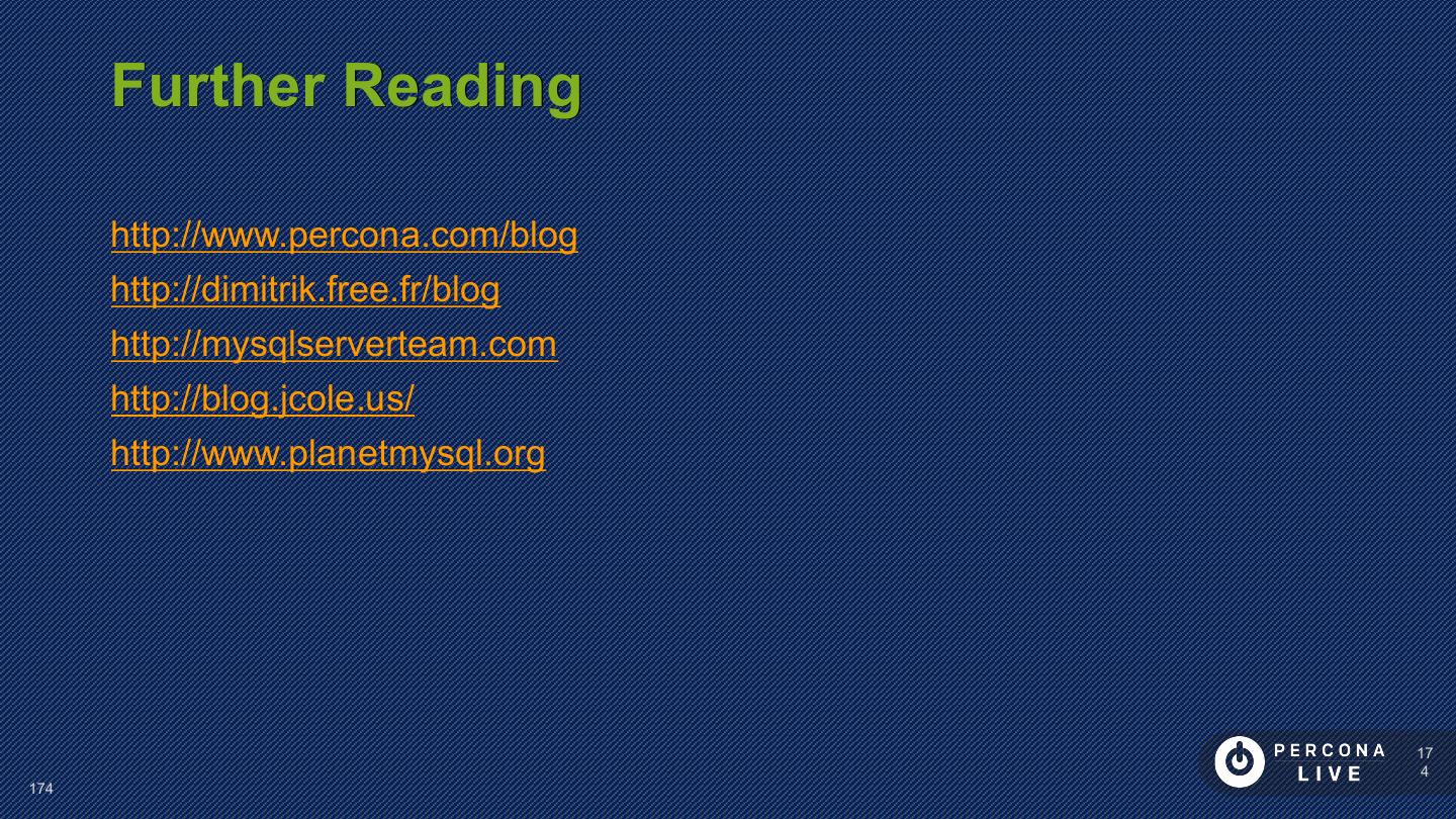 23 . Performance Considerations Have PRIMARY KEY Short PRIMARY KEYs are better Sequential inserts are much faster for PRIMARY KEY Great to keep Secondary Keys in Memory 23 23