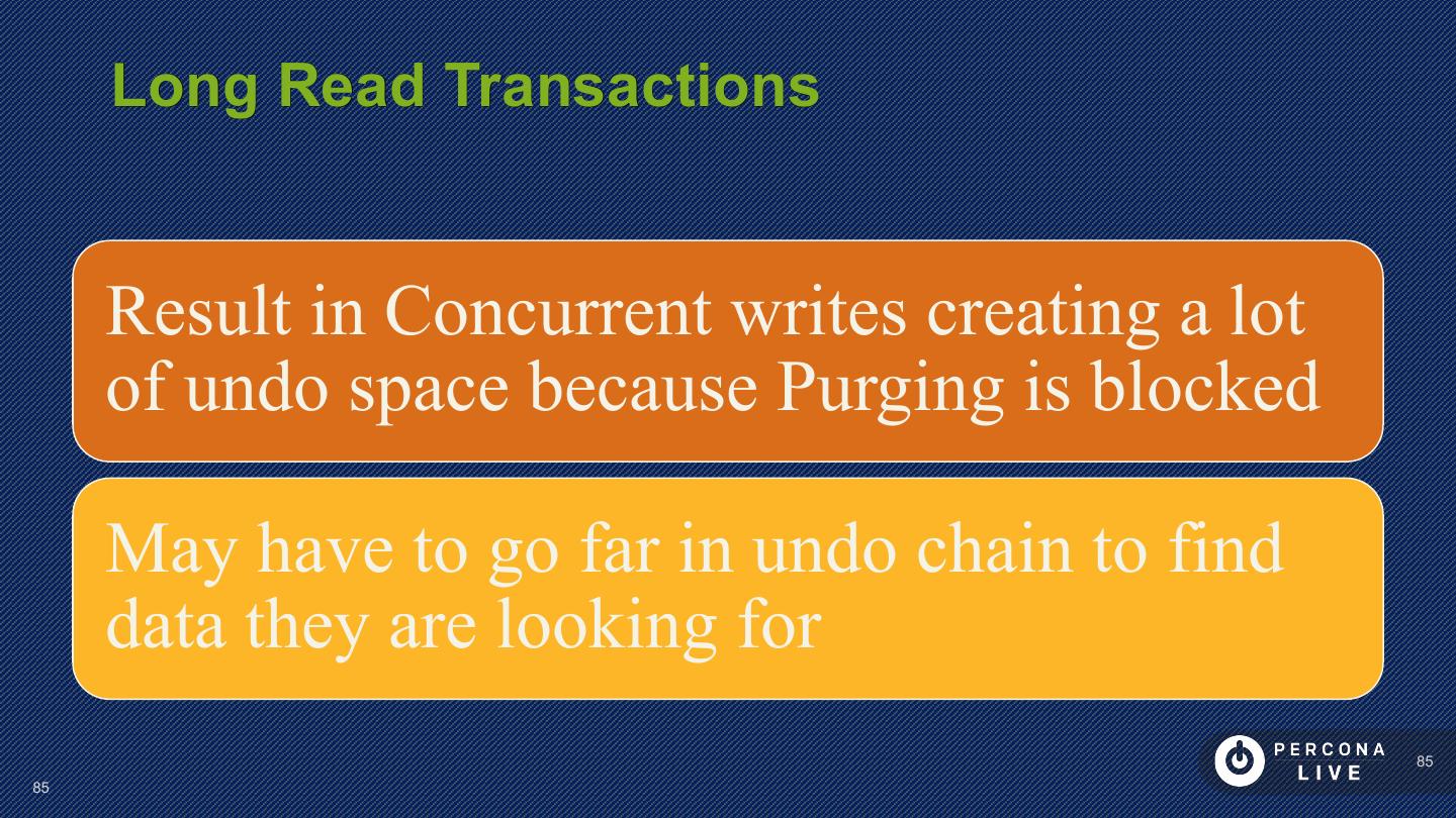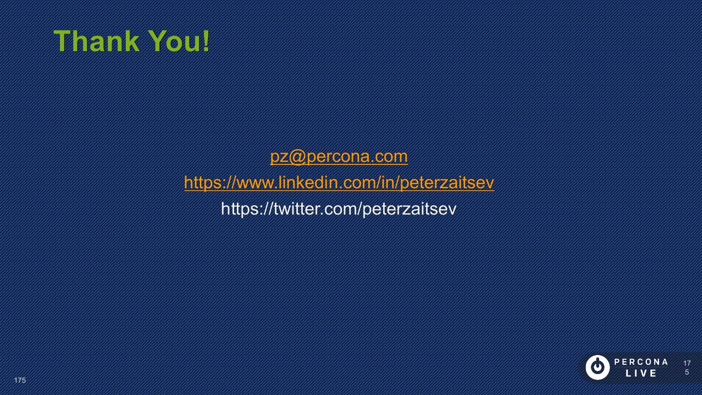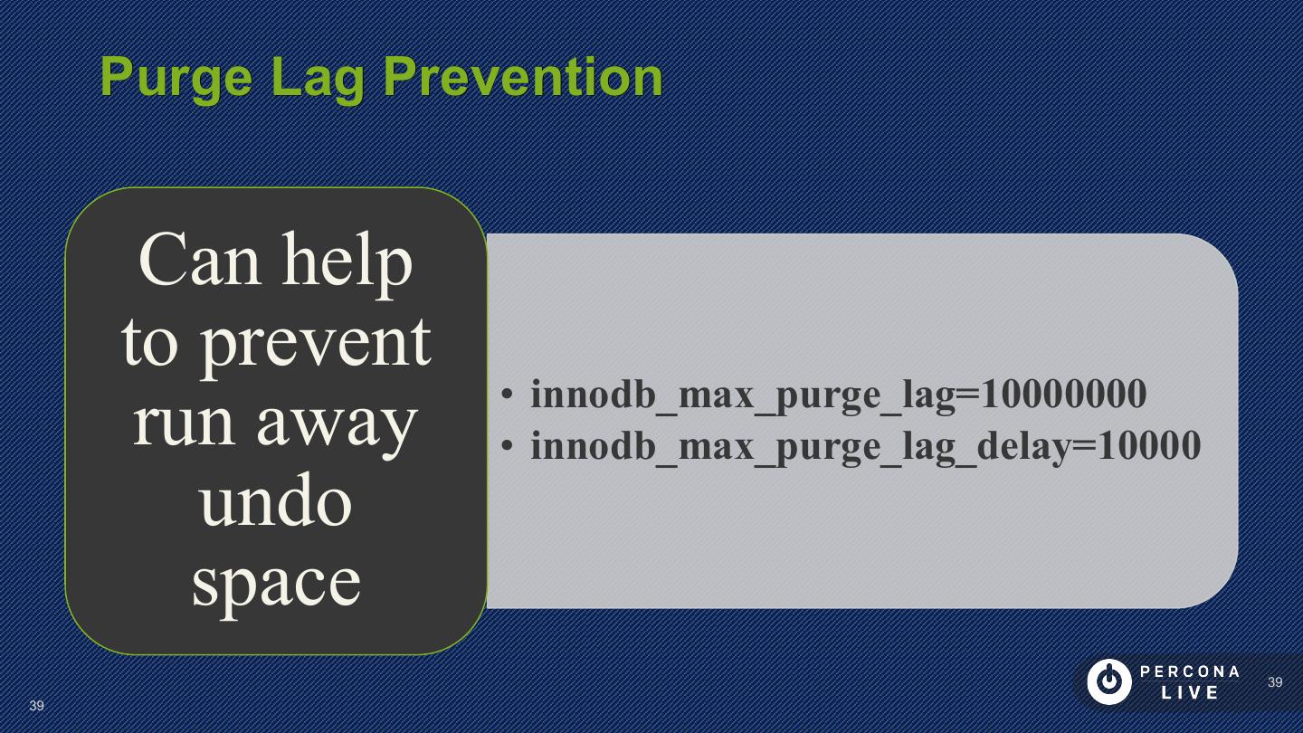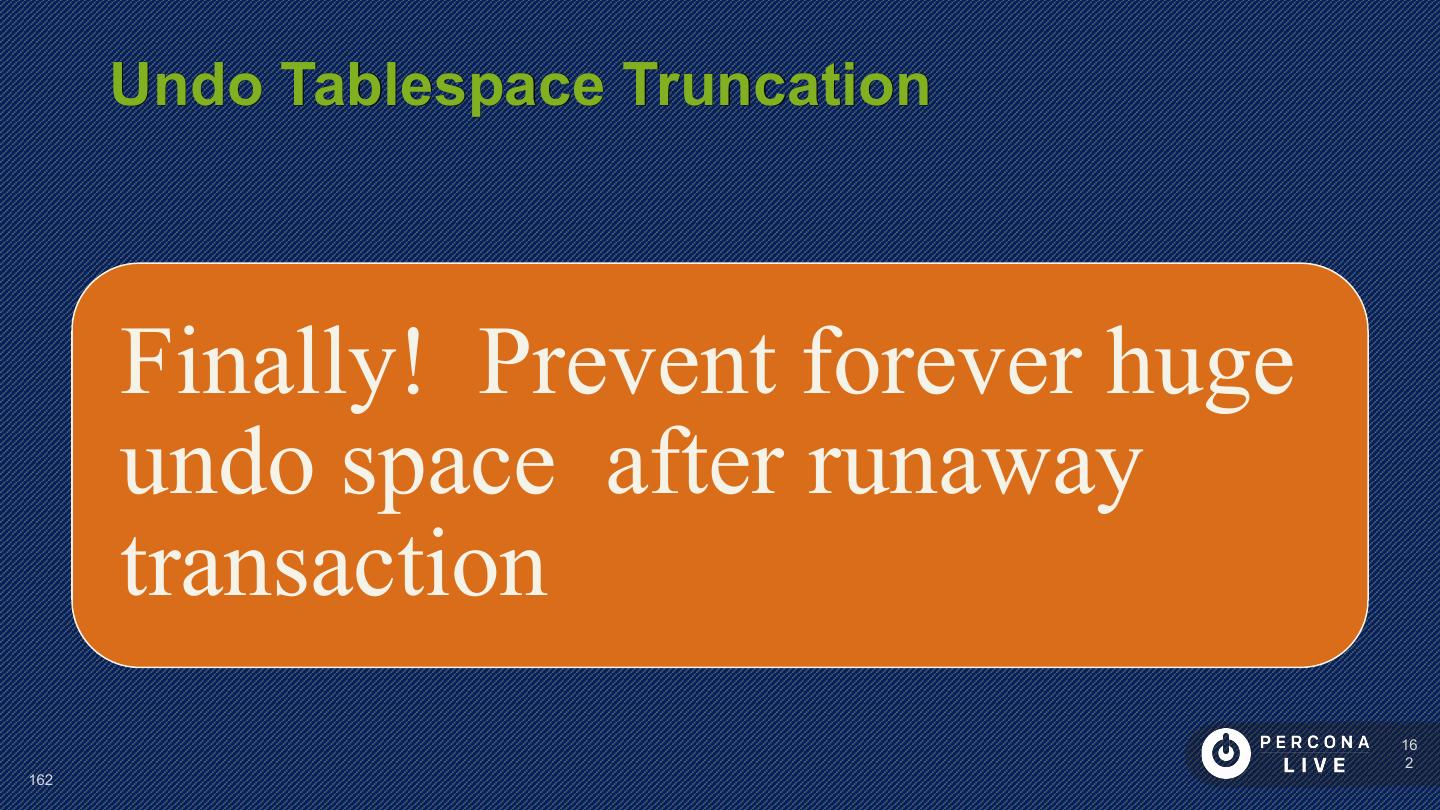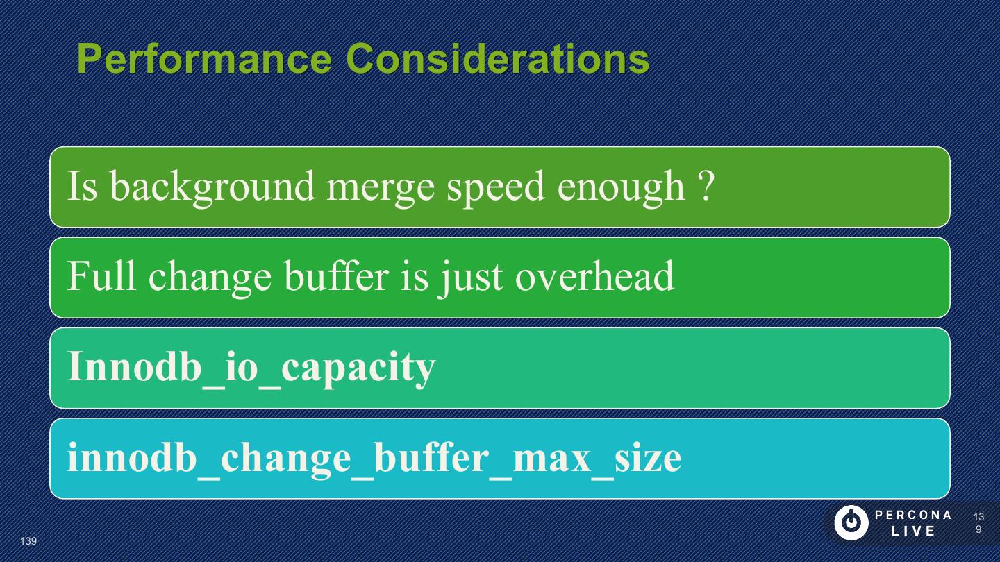 26 . Performance Considerations Innodb_log_file_size • to control size of redo log innodb_log_write_ahead_size • Avoid ‘read-around-write’ for large log files not in cache • better write performance (less flushing) Larger log size • longer recovery time 26 26