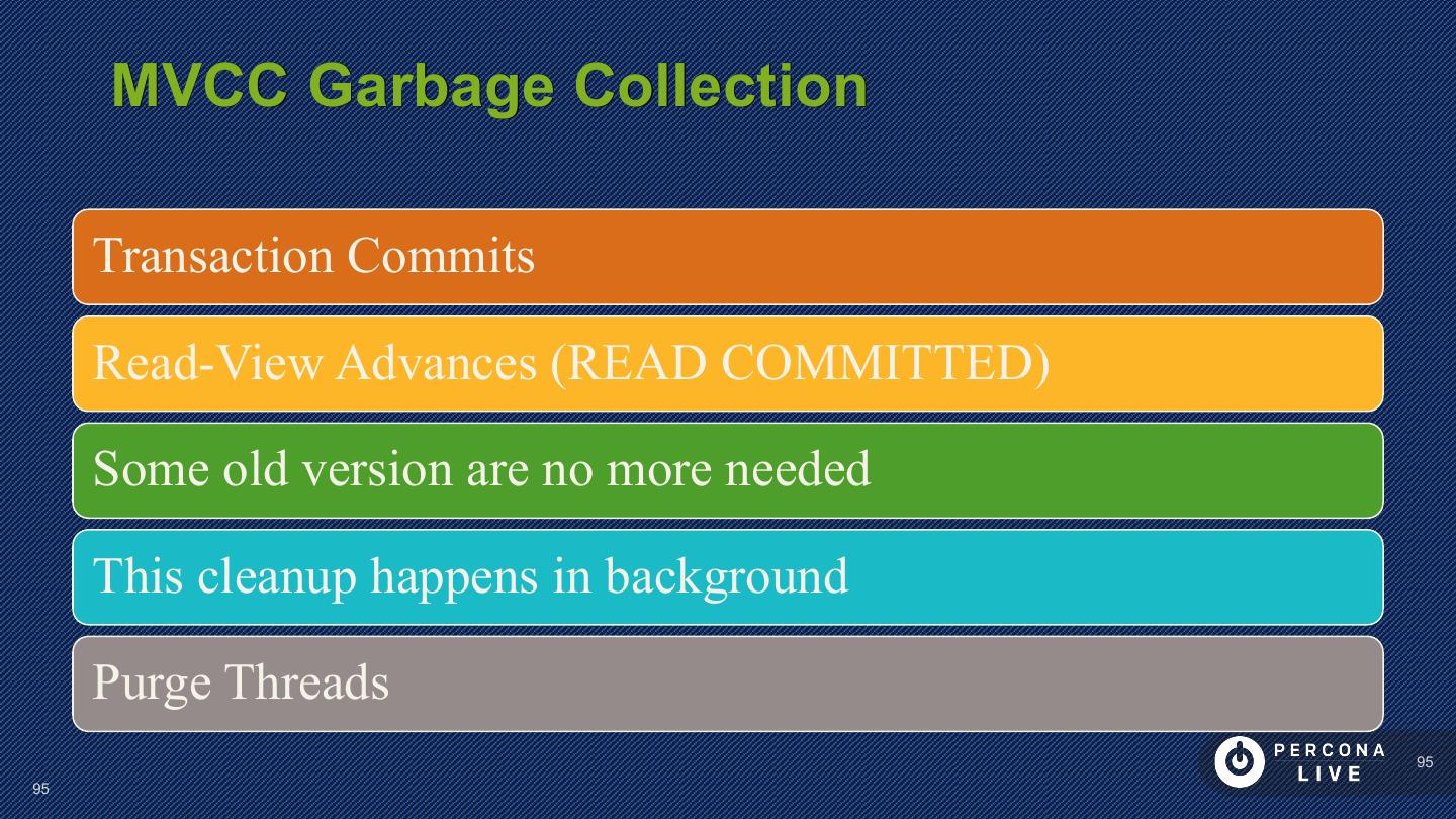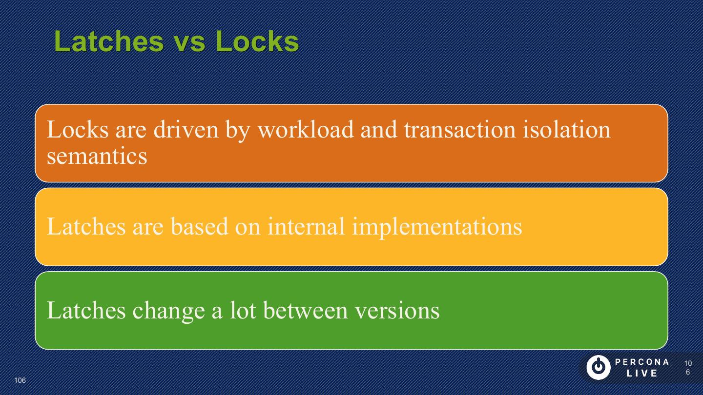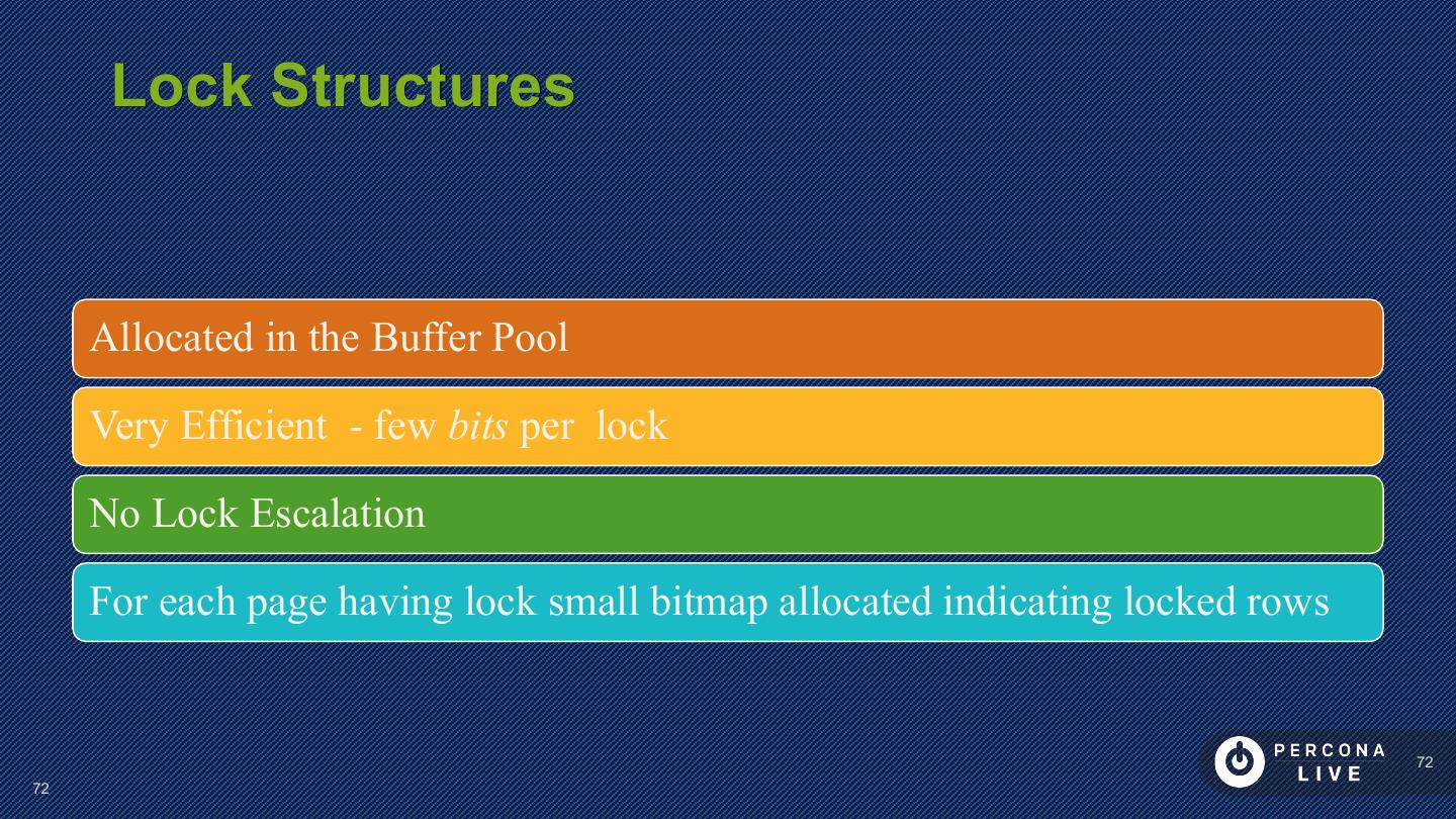 7 . What Architecture ? Data Details for Background Structures • Transactions Activities • On Disk • MVCC • Purging • In Memory • Locking • Checkpointing • Latching • Flushing 7 7