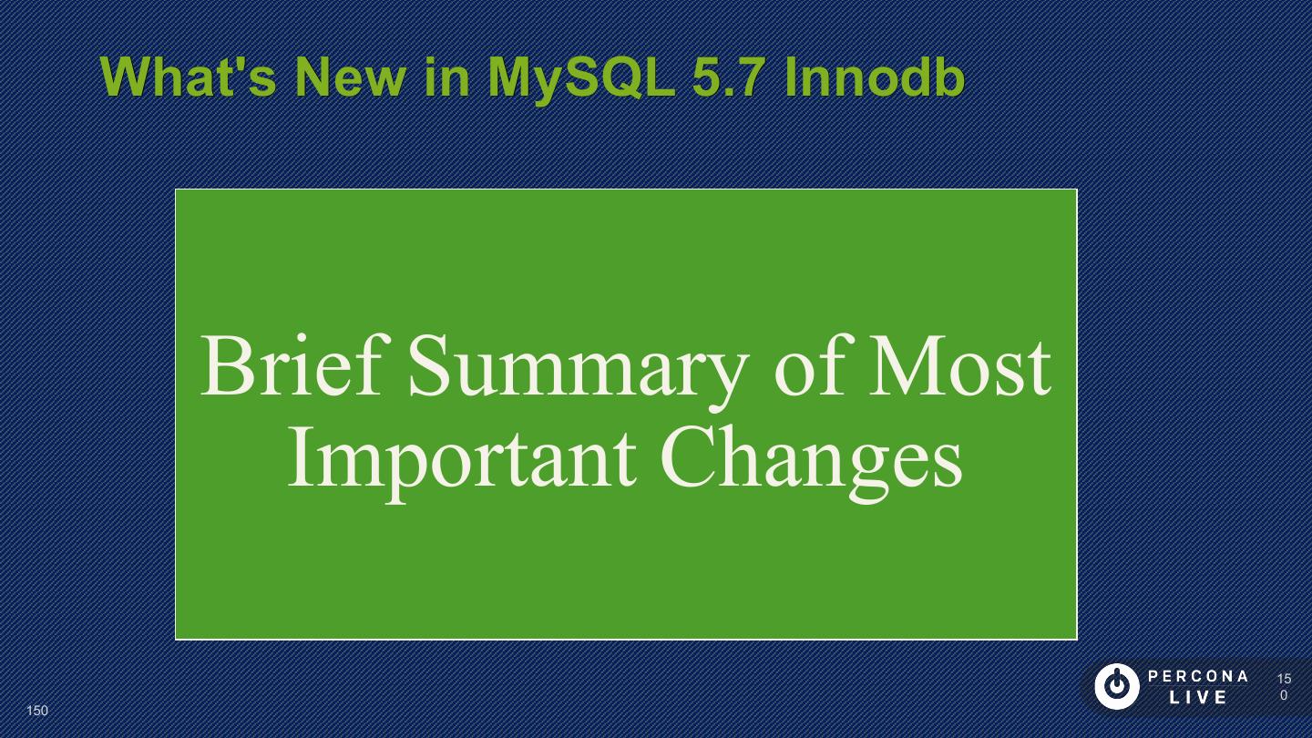8 . Innodb Versions Covered Improvements MySQL 5.7 as Changes in in XtraDB / Baseline MariaDB Percona Server 8 8