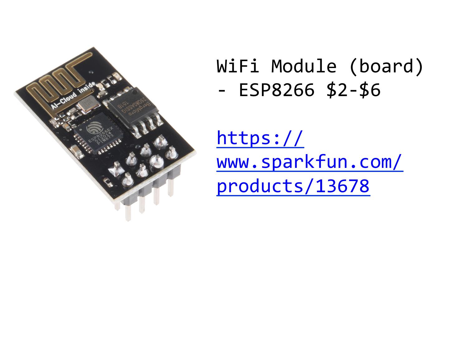 6 .WiFi Module (board) - ESP8266 $2-$6 https:// www.sparkfun.com/ products/13678