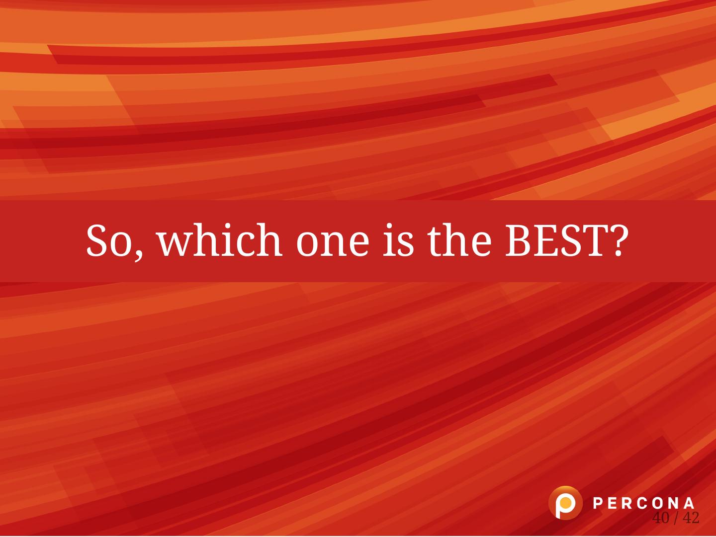 24 . Filesystem Snapshots Why consider snapshots: Mixing storage engines i.e. InnoDB + TokuDB Really large datasets, less frequency, must have at least N intervals When it is more practical solution i.e. GCE snapshots 24 / 42