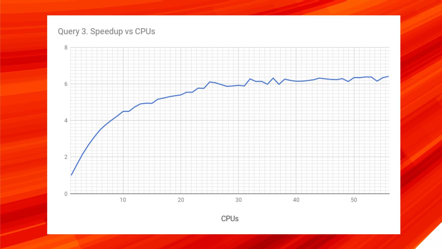 14 .Execution on single server 56 threads / 28 cores | Intel(R) Xeon(R) CPU E5-2683 v3 @ 2.00GHz Query execution time With 1 thread allowed: 823.646 sec ~ 1.89 mln records/sec With 56 threads allowed: 23.587 sec ~ 66.14 mln records/sec Speedup: 34.9x times 14 © 2017 Percona