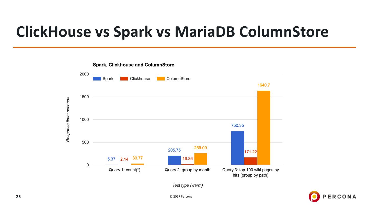 25 .ClickHouse vs Spark vs MariaDB ColumnStore 25 © 2017 Percona