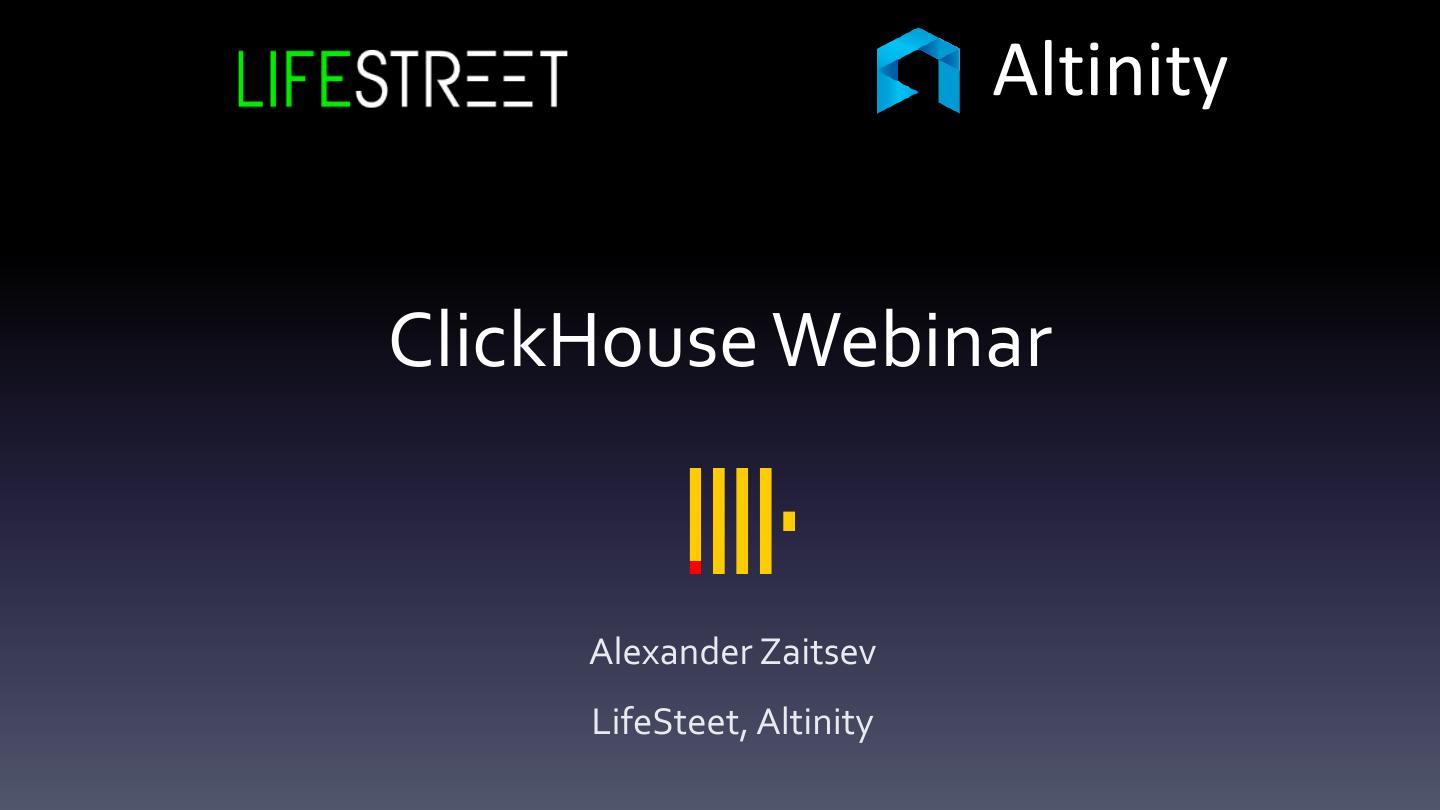 1 . Supercharge Your Analytics with ClickHouse Webinar September 14th, 2017 Vadim Tkachenko CTO, Percona Alexander Zaitsev CTO, Altinity 1 © 2017 Percona