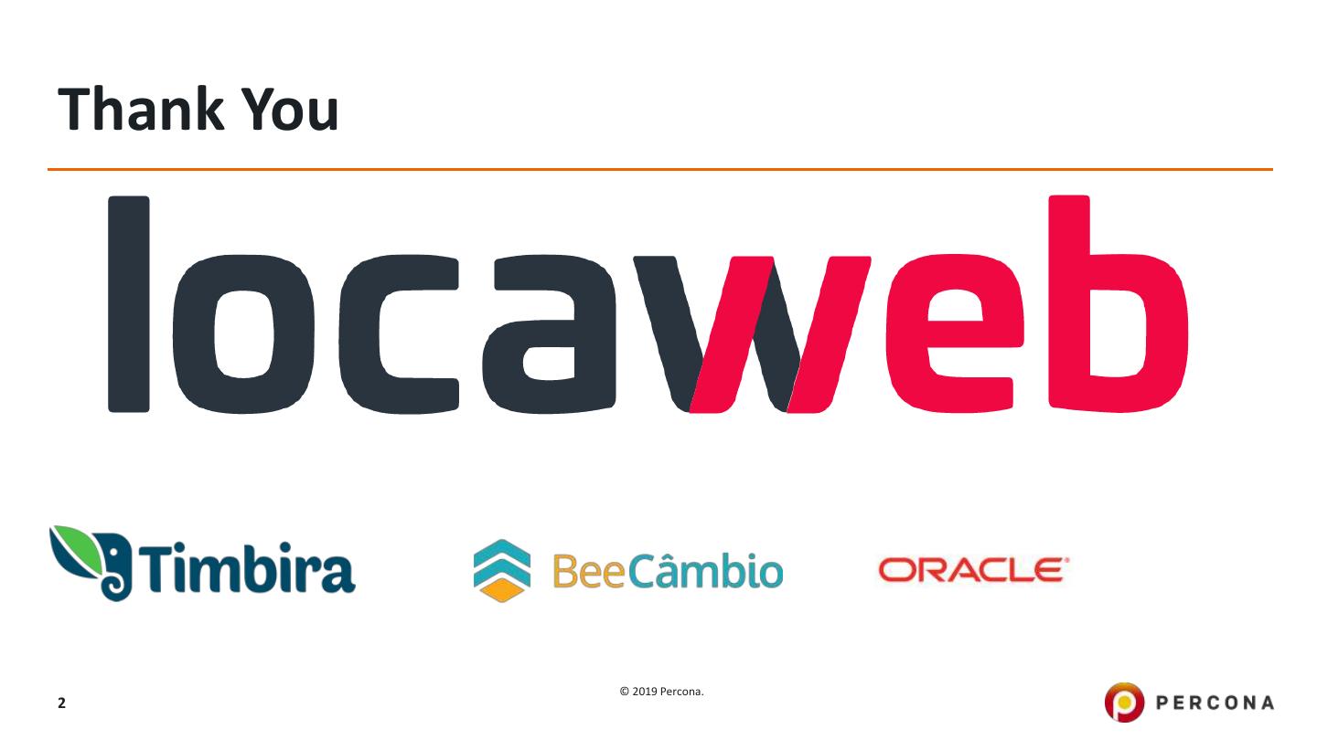 2 .Thank You © 2019 Percona. 2