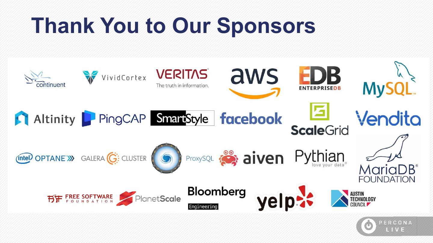 在本课程中,我们将探讨这些更改如何影响PxC-8.0、PxC-8.0中的更改、新的和不推荐使用的功能、重要的bug等等。如果您已经是一个PXC用户或计划考虑它参加这个会议,以了解更多关于PXC-8.0的信息。