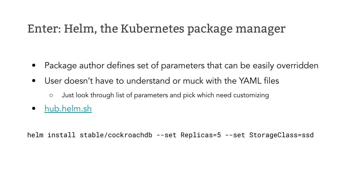 21 .Let’s skip over the basics • Unless you want to manually pin pods to nodes, you should use either: ○ StatefulSet: ■ decouples replicas from nodes ■ persistent address for each replica, DNS-based peer discovery ■ network-attached storage instance associated with each replica ○ DaemonSet: ■ pin one replica to each node ■ use node’s disk(s)