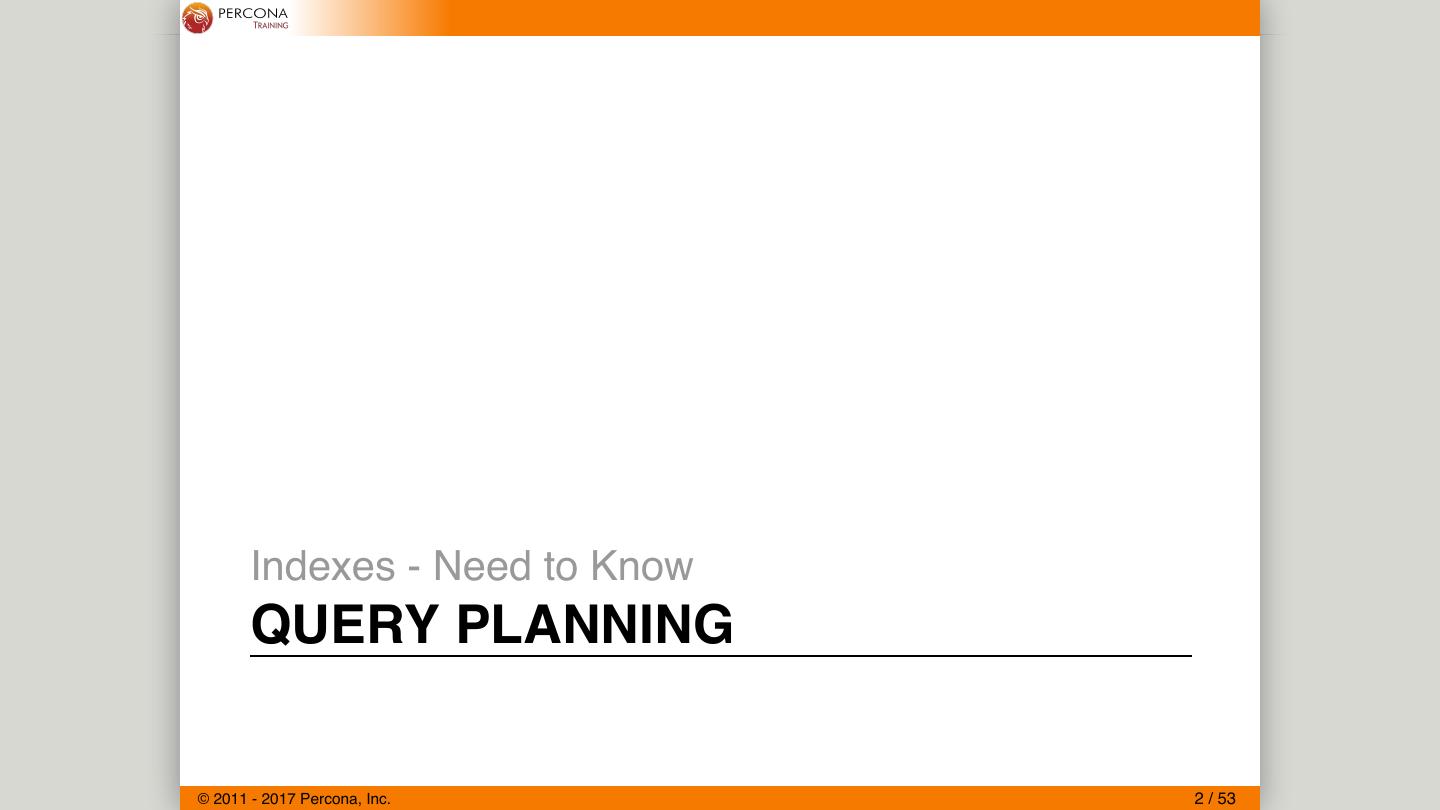 2 . Indexes - Need to Know QUERY PLANNING © 2011 - 2017 Percona, Inc. 2 / 53