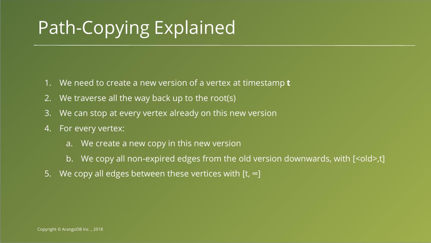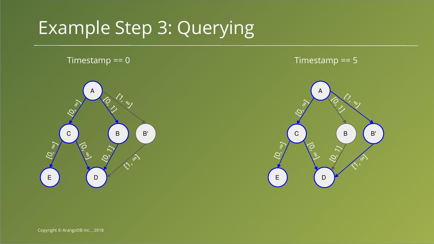 10 .Example Step 3: Querying Timestamp == 0 Timestamp == 5 A A C B B' C B B' E D E D Copyright © ArangoDB Inc. , 2018