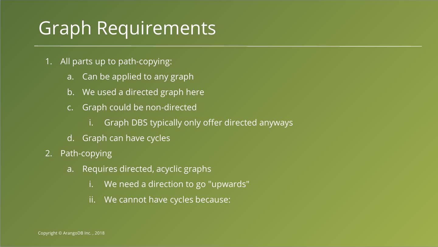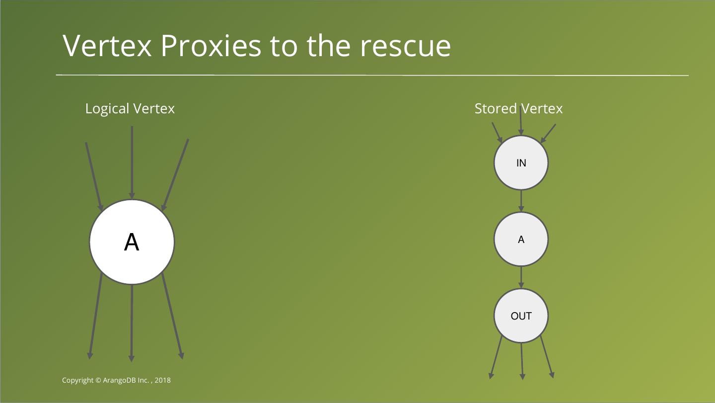 16 .Vertex Proxies to the rescue Logical Vertex Stored Vertex IN A A OUT Copyright © ArangoDB Inc. , 2018