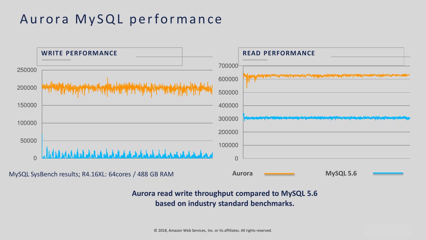 15 .How did we achieve this? DO LESS WORK BE MORE EFFICIENT Do fewer IOs Process asynchronously Minimize network packets Reduce latency path Cache prior results Use lock-free data structures Offload the database engine Batch operations together DATABASES ARE ALL ABOUT I/O NETWORK-ATTACHED STORAGE IS ALL ABOUT PACKETS/SECOND HIGH-THROUGHPUT PROCESSING IS ALL ABOUT CONTEXT SWITCHES © 2018, Amazon Web Services, Inc. or its affiliates. All rights reserved.