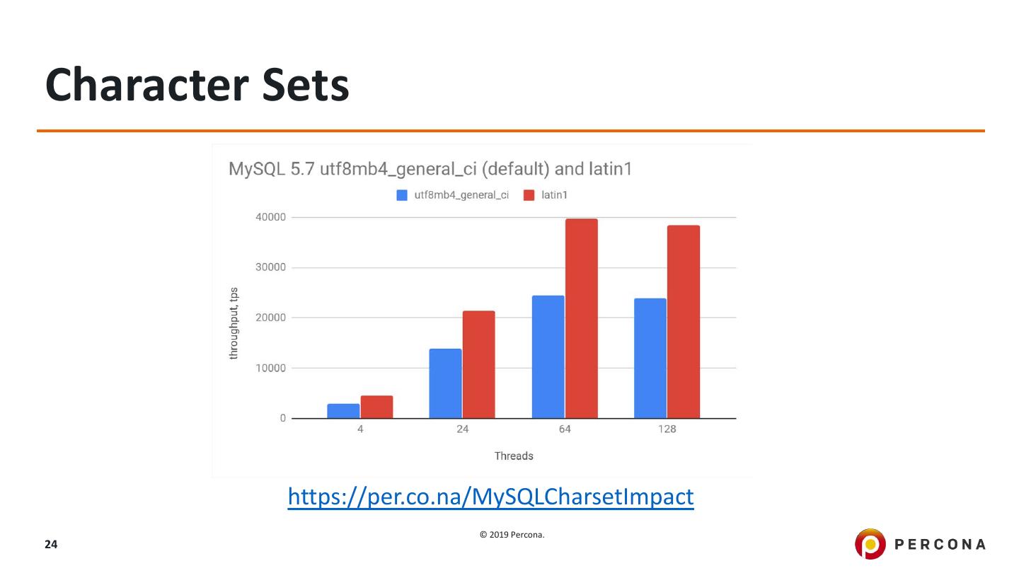 24 .Character Sets https://per.co.na/MySQLCharsetImpact © 2019 Percona. 24