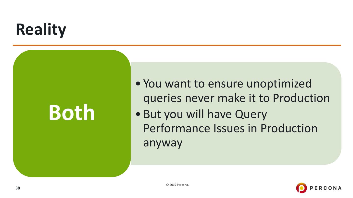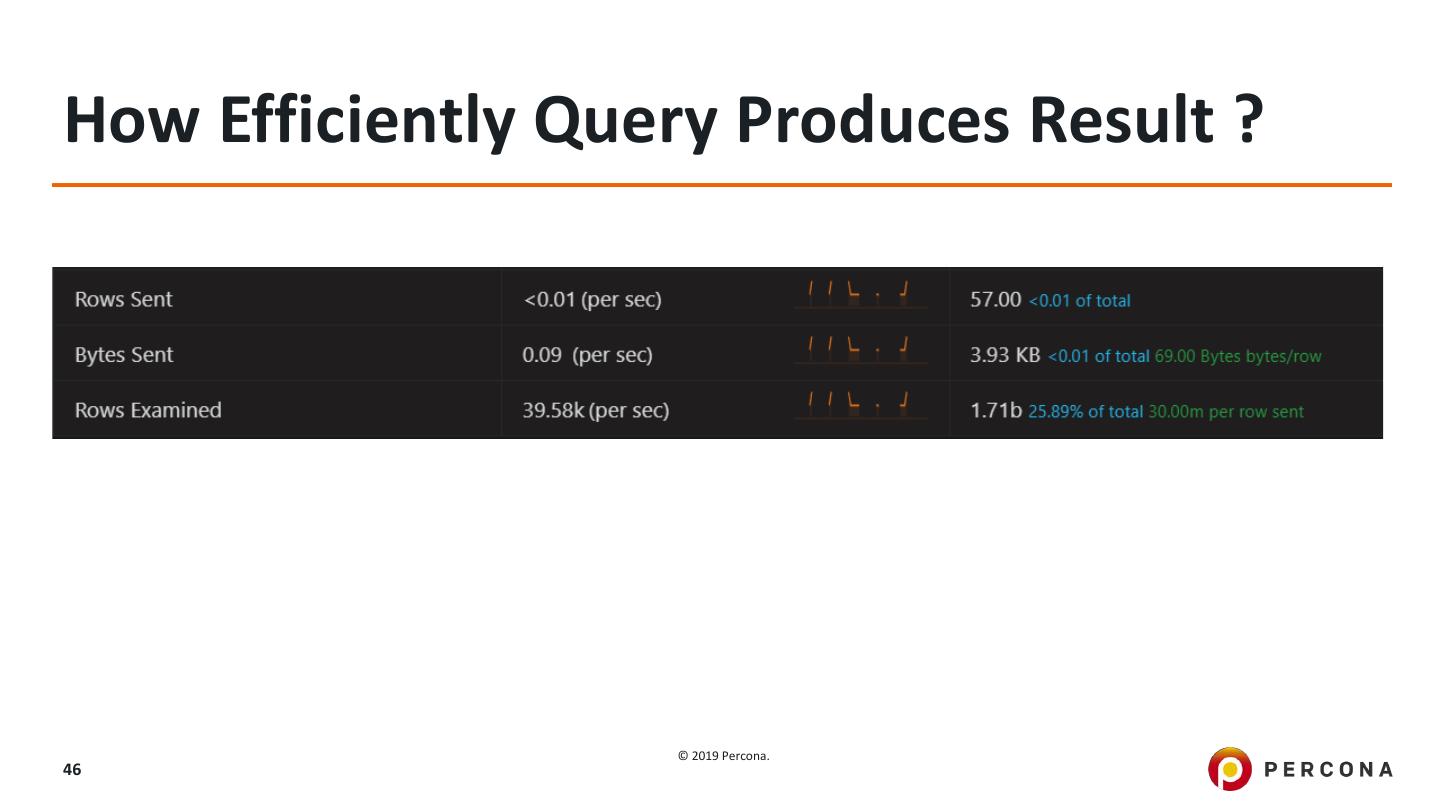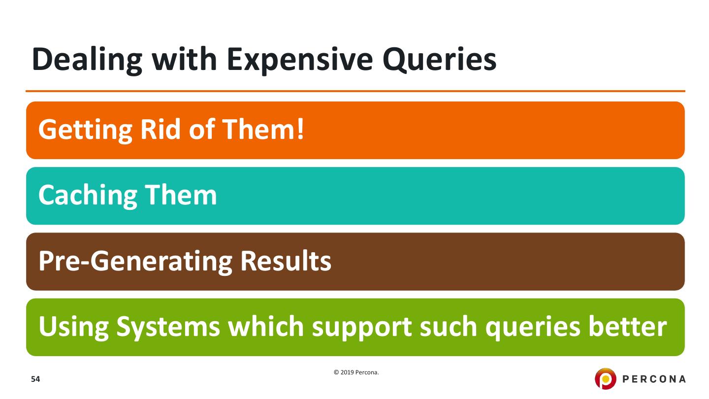13 .Query Optimization Goals Specific User Interaction Application As a Whole Improving Efficiency Assuring Scalability © 2019 Percona. 13