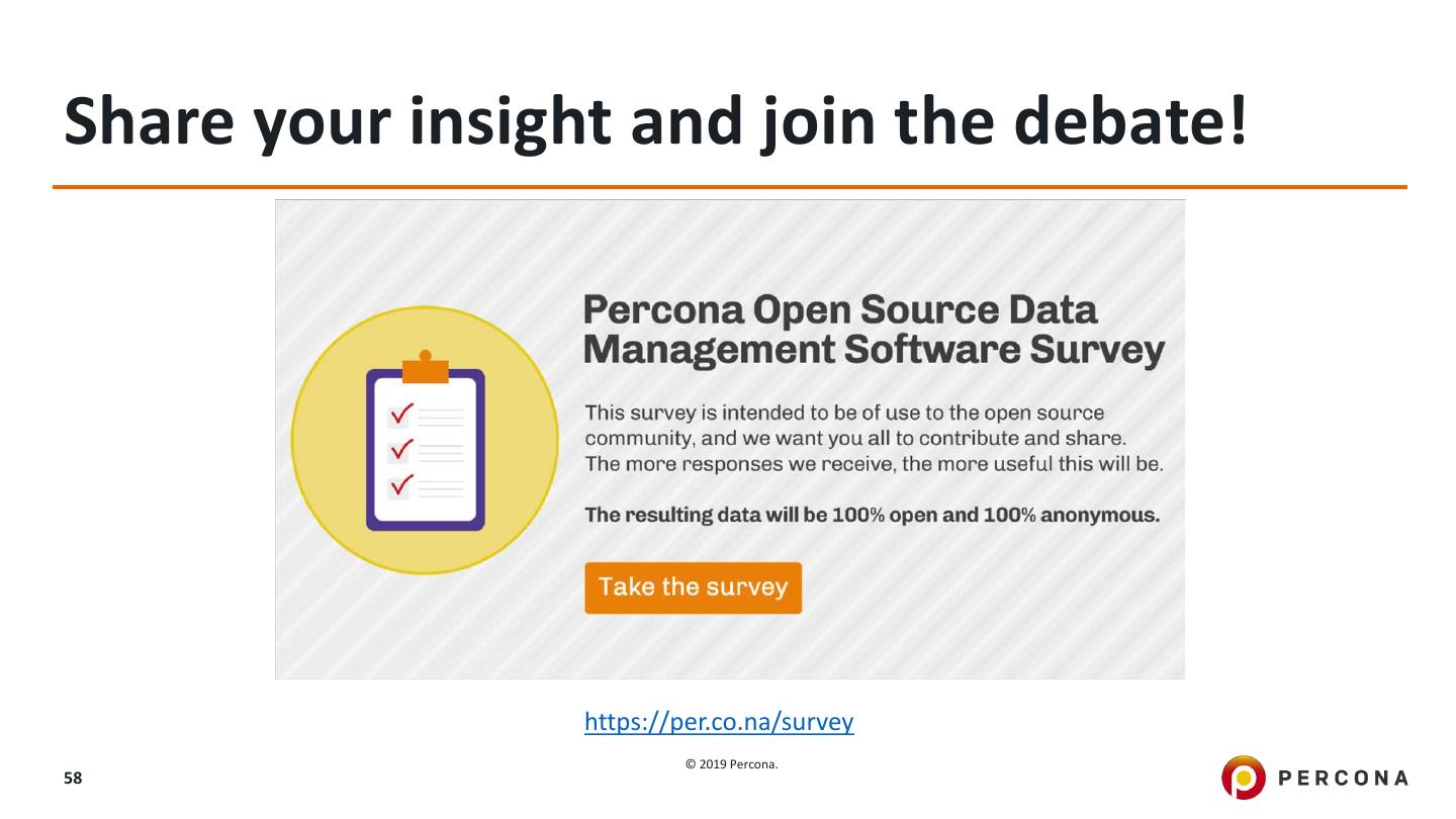 2 .About Percona Open Source Database Solutions Company Support, Managed Services, Consulting, Training, Engineering Focus on MySQL, MariaDB, MongoDB, PostgreSQL Support Cloud DBaaS Variants on major clouds Develop Database Software and Tools Release Everything as 100% Free and Open Source © 2019 Percona. 2