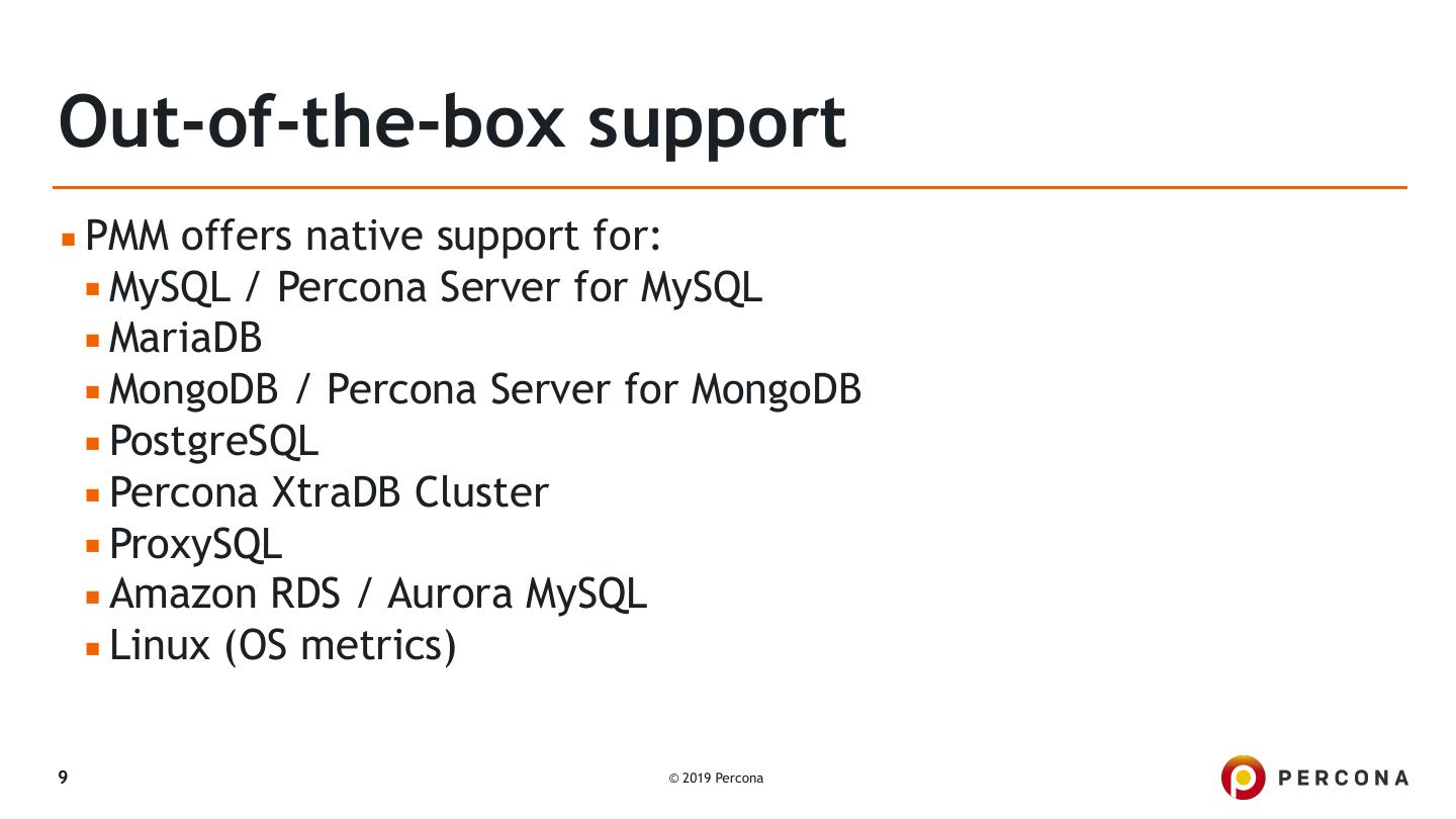 8 .PMM's functionality 8 © 2019 Percona