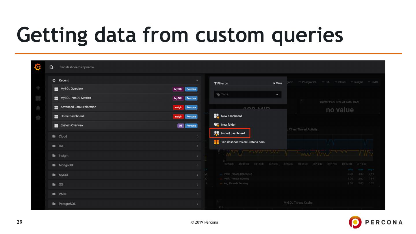 29 .Getting data from custom queries 29 © 2019 Percona