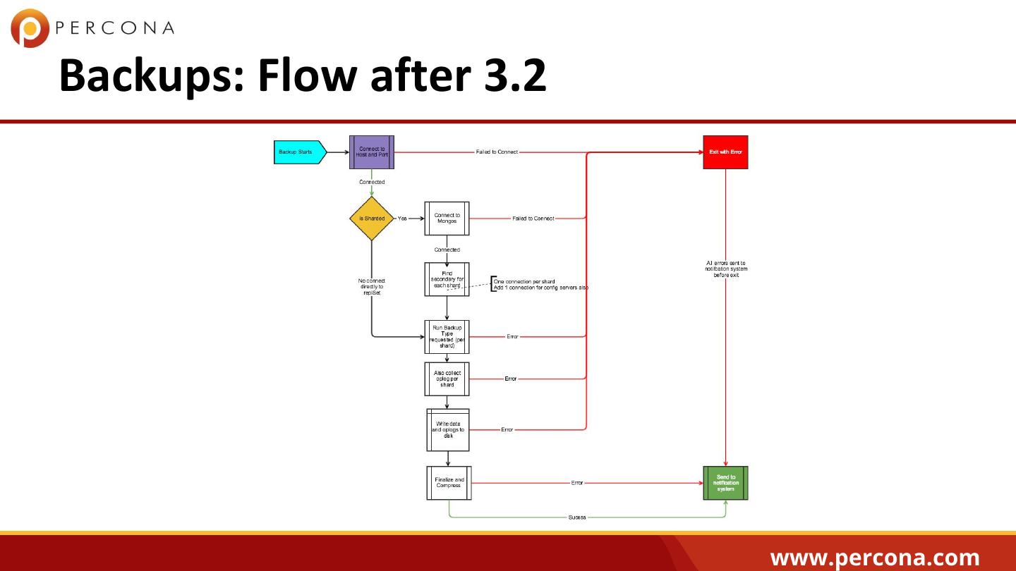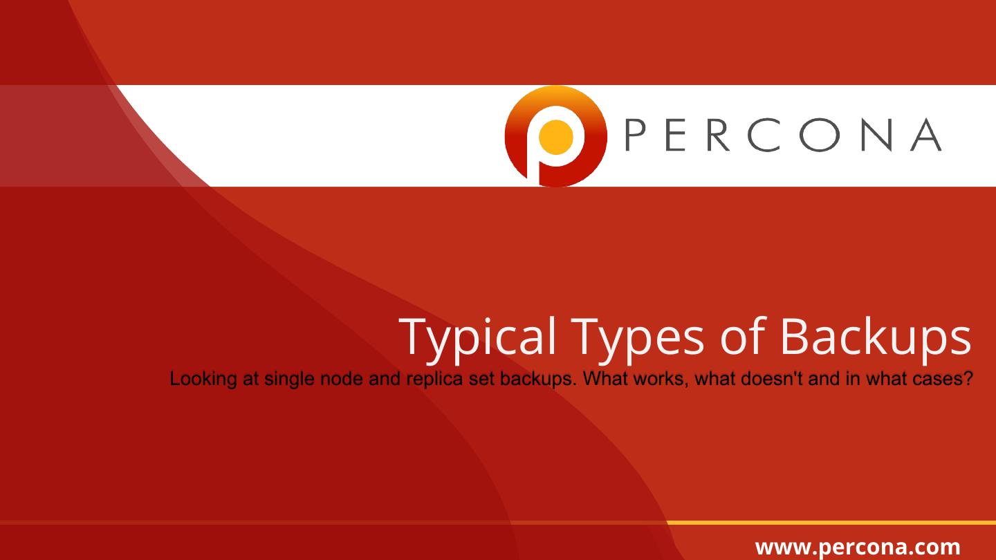 3 .Agenda Typical types of backups Complications when sharding Consistent backups are easier in 3.2 New backup tool from Percona Labs PSMDB providing free and open source hot backups www.percona.com
