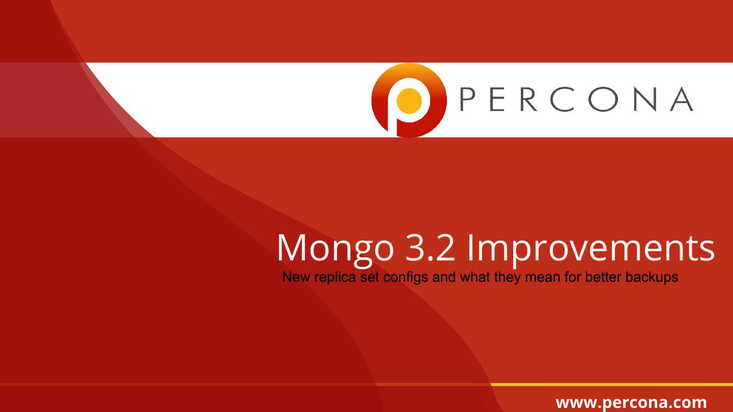 17 .Mongo 3.2 Improvements New replica set configs and what they mean for better backups www.percona.com