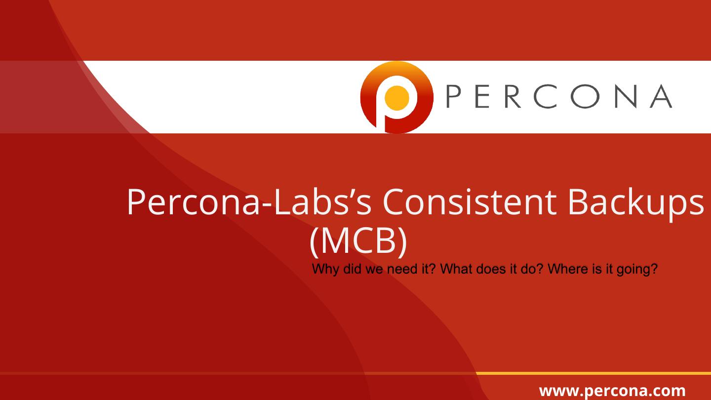 21 .Percona-Labs’s Consistent Backups (MCB) Why did we need it? What does it do? Where is it going? www.percona.com