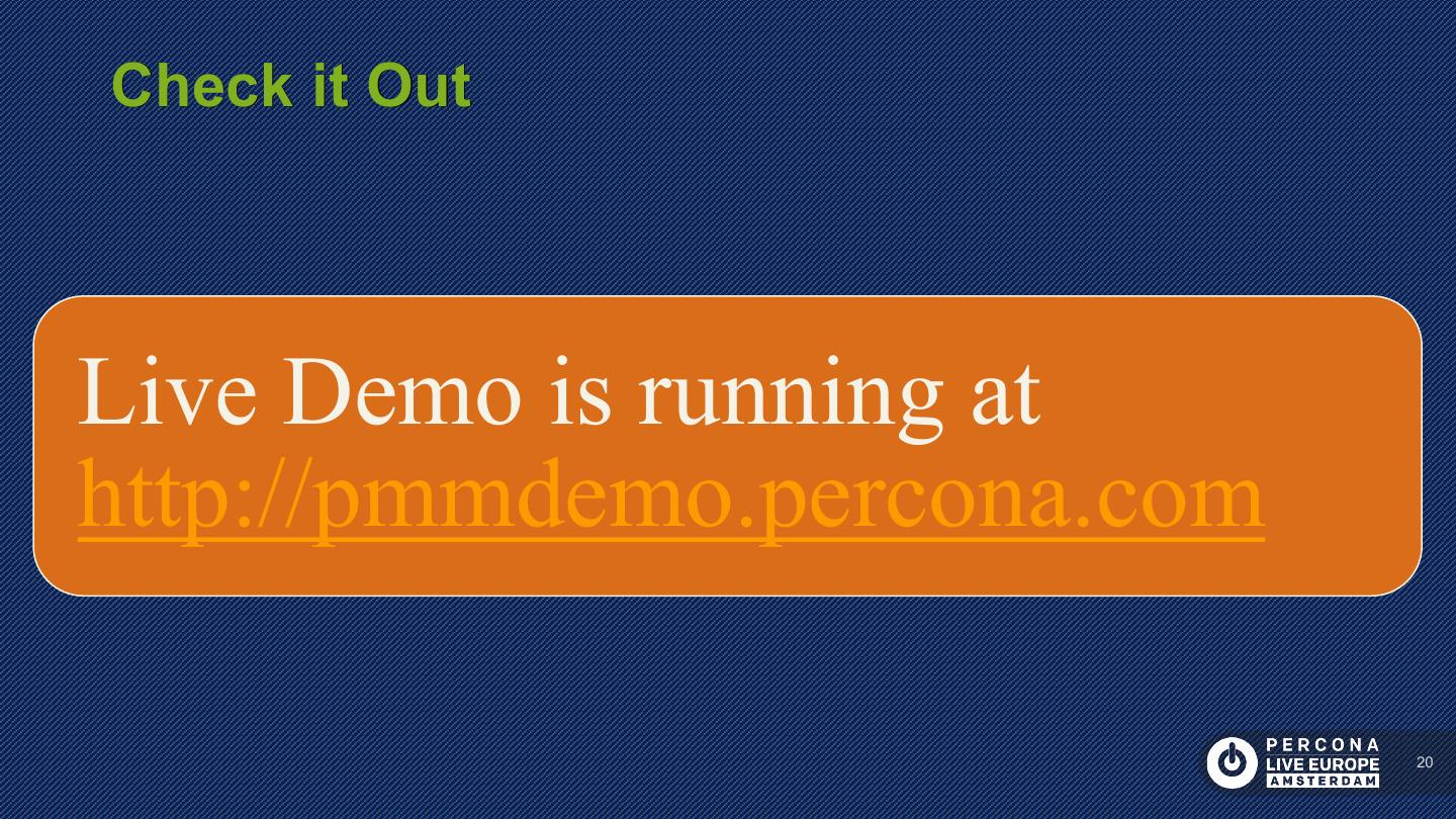 20 .Check it Out Live Demo is running at http://pmmdemo.percona.com 20