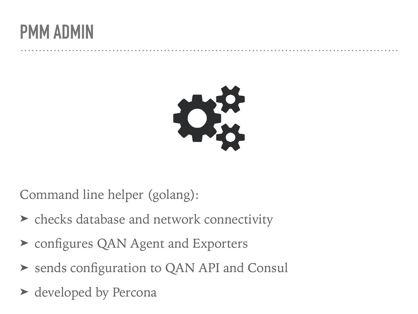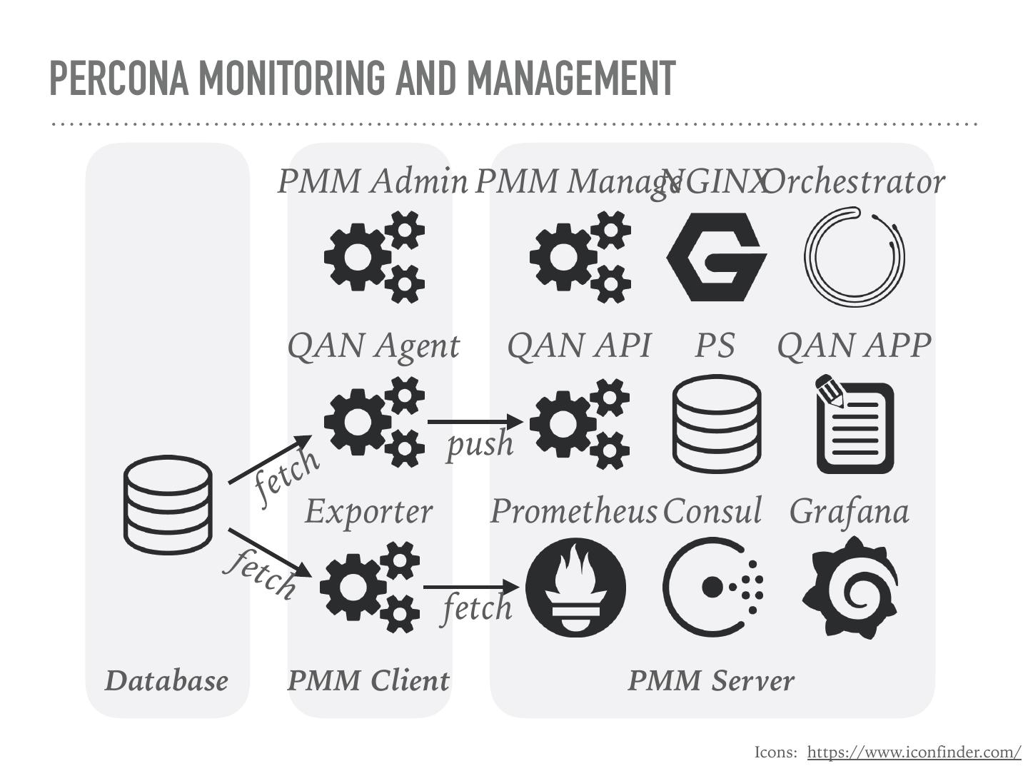 16 .QUERY ANALYTICS MySQL/ Percona MongoDB/ QAN-Agent QAN-API Server QAN-APP RDS for MySQL fetch push Database PMM Client PMM Server Icons: https://www.iconfinder.com/
