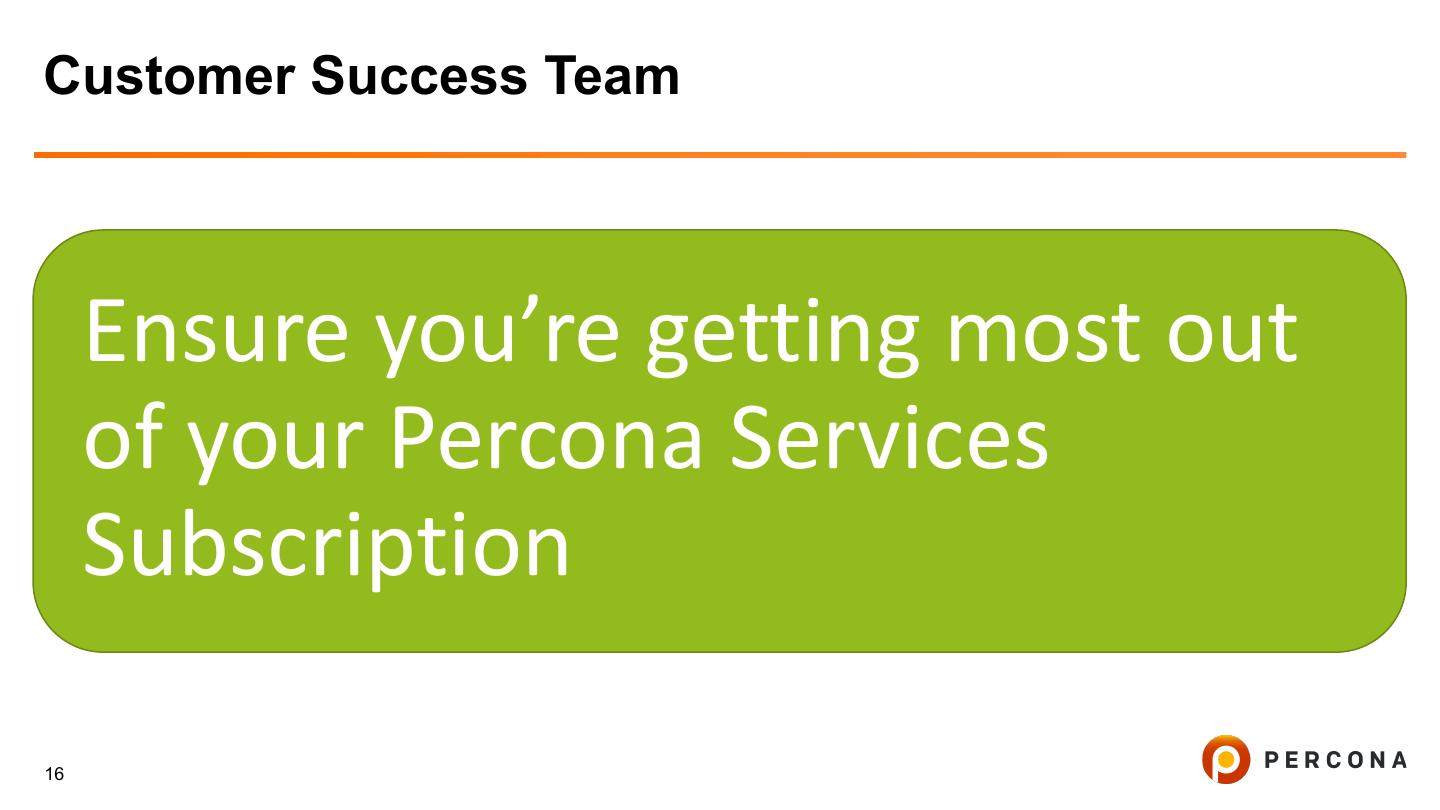 16 .Customer Success Team Ensure you’re getting most out of your Percona Services Subscription 16