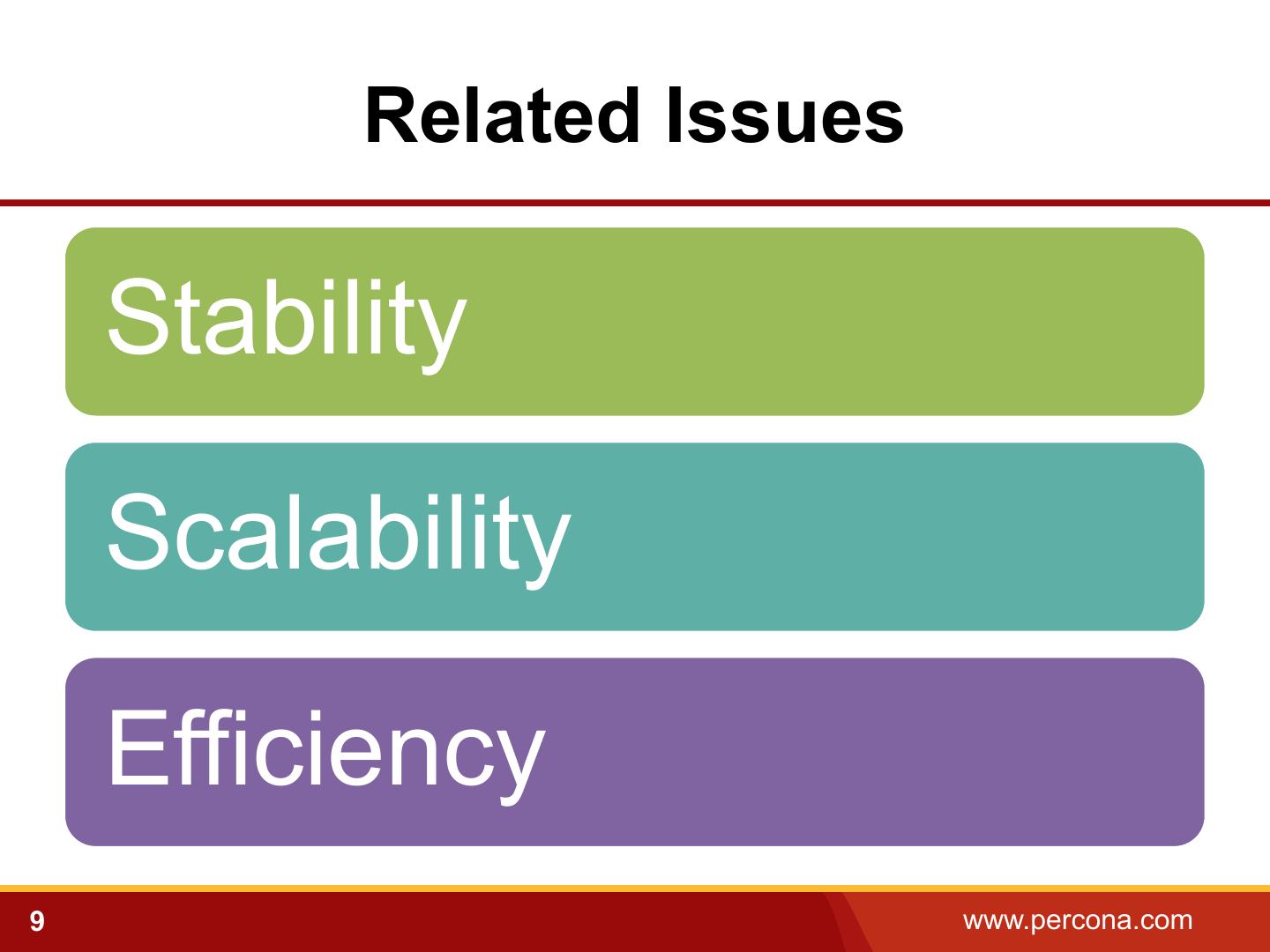 9 . Related Issues Stability Scalability Efficiency 9 www.percona.com