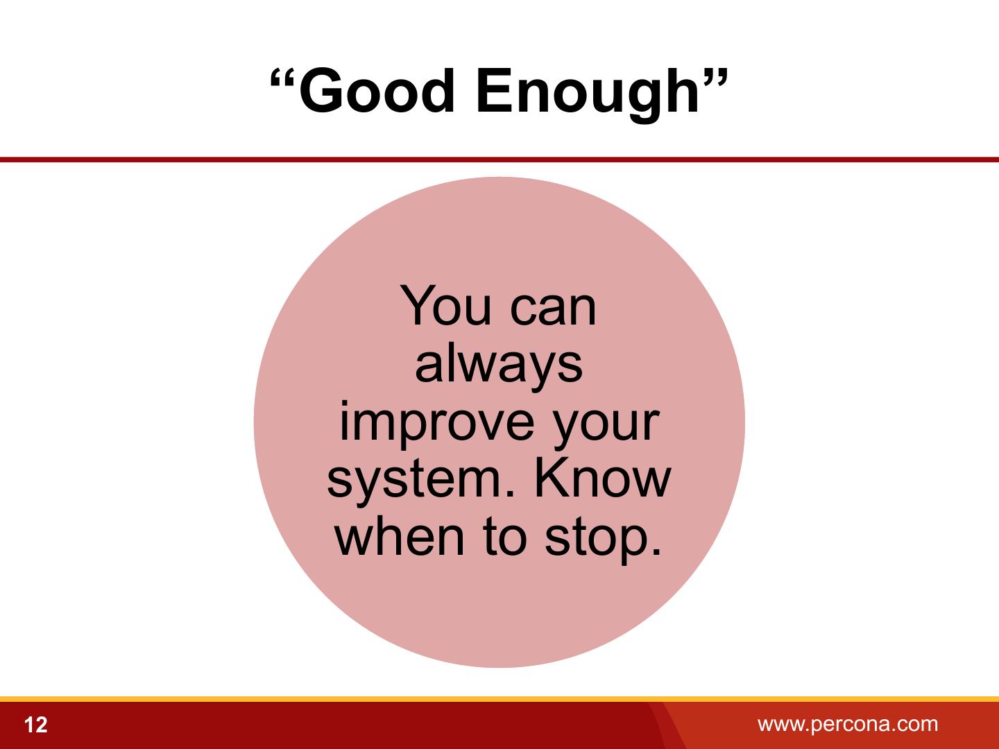 12 . “Good Enough” You can always improve your system. Know when to stop. 12 www.percona.com