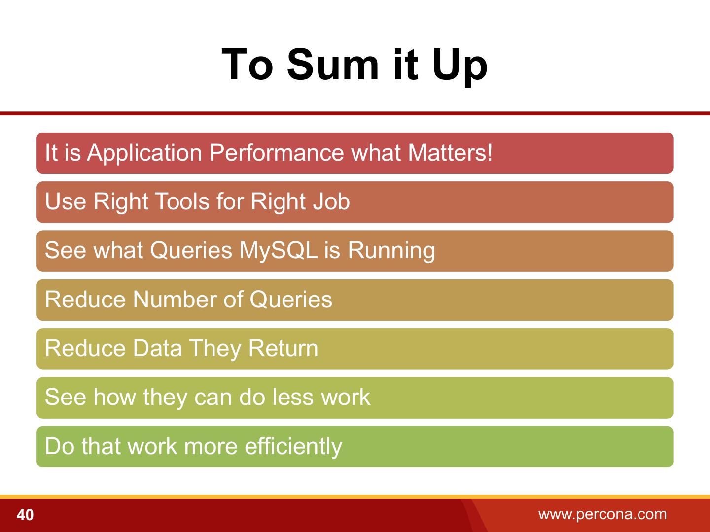 6 . Take Away Performance Performance Problems might Solutions might not not be MySQL be with MySQL 6 www.percona.com