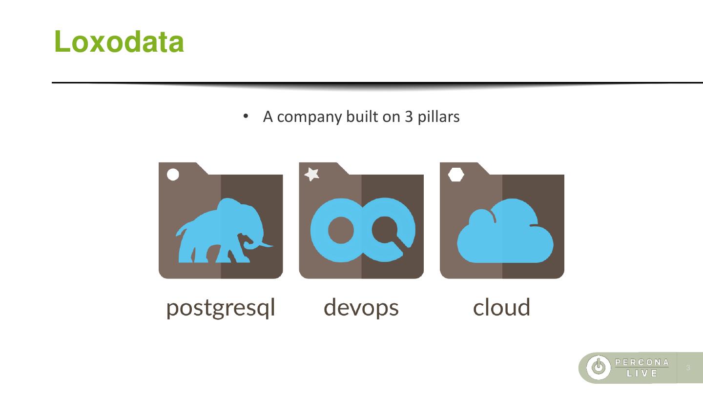 2 .Few words about the speaker • Born in 1972 • Passionate about IT since 1982 • Joined the Oracle DBA secret society in 2004 • In love with PostgreSQL since 2006 • PostgreSQL tattoo on the right shoulder • Works at Loxodata as PostgreSQL Consultant 2