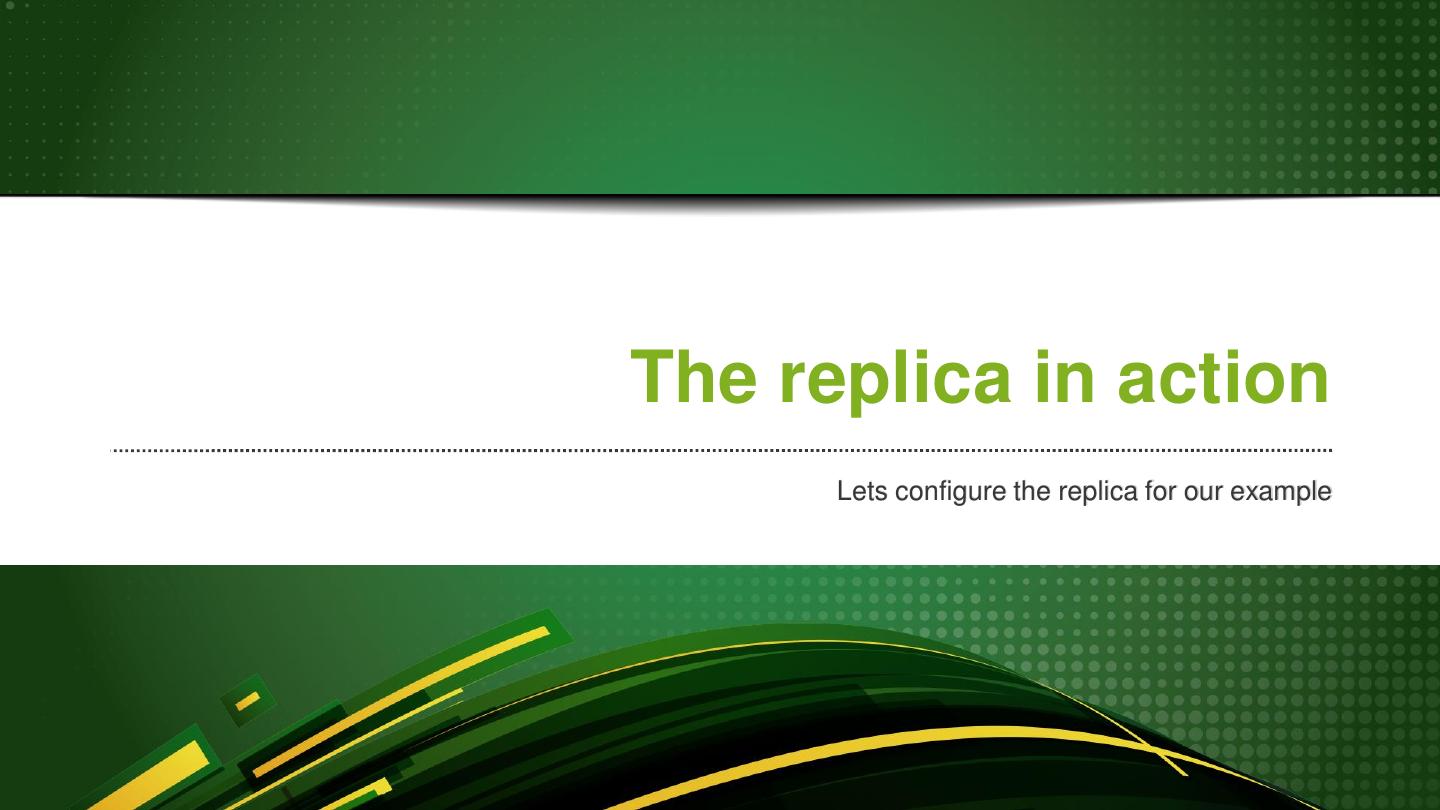 22 .The replica in action Lets configure the replica for our example