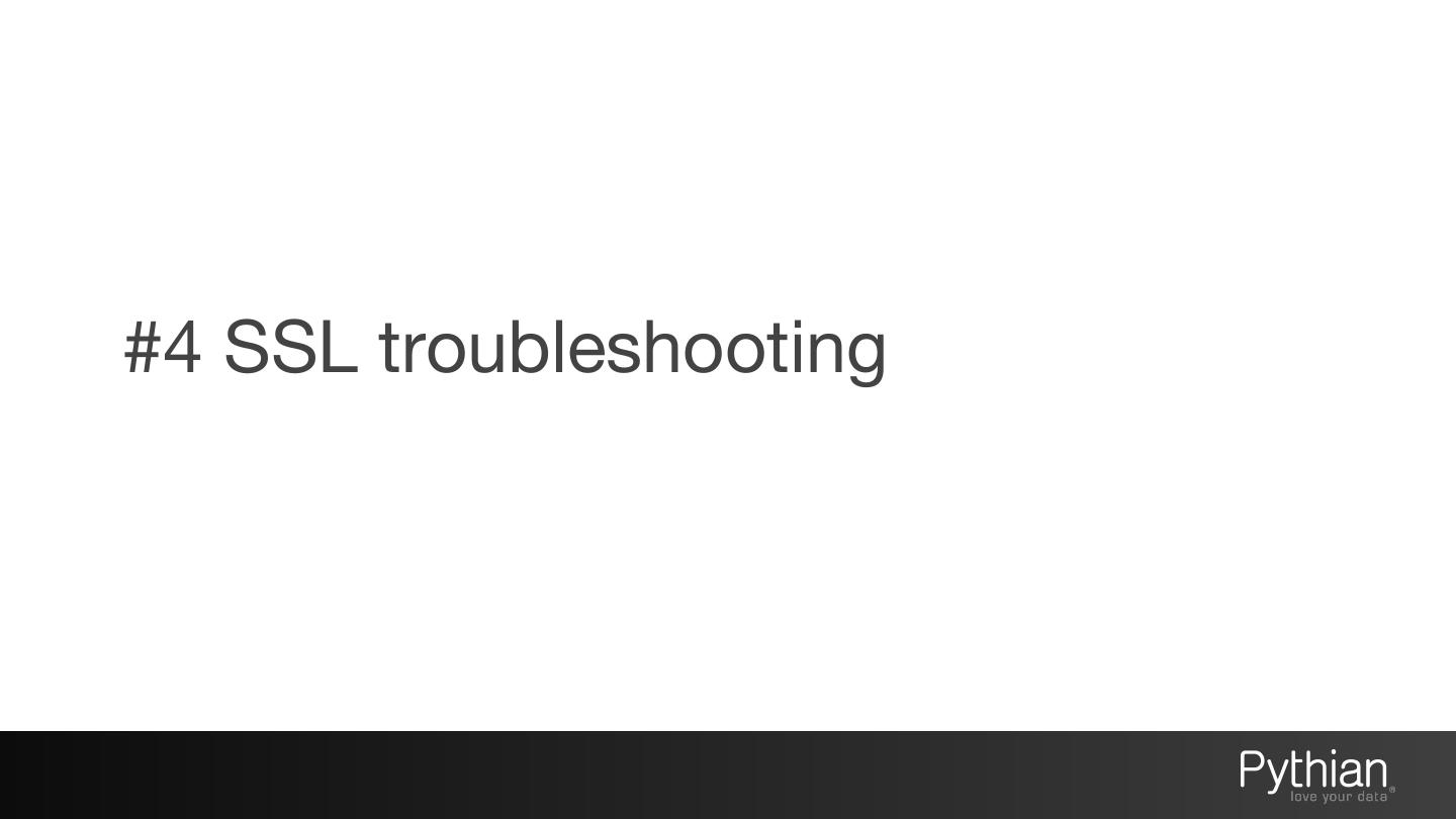 16 .SSL troubleshooting ## Configuration ssl: mode:[ allowSSL | preferSSL | requireSSL | ] allowConnectionsWithoutCertificates: true
