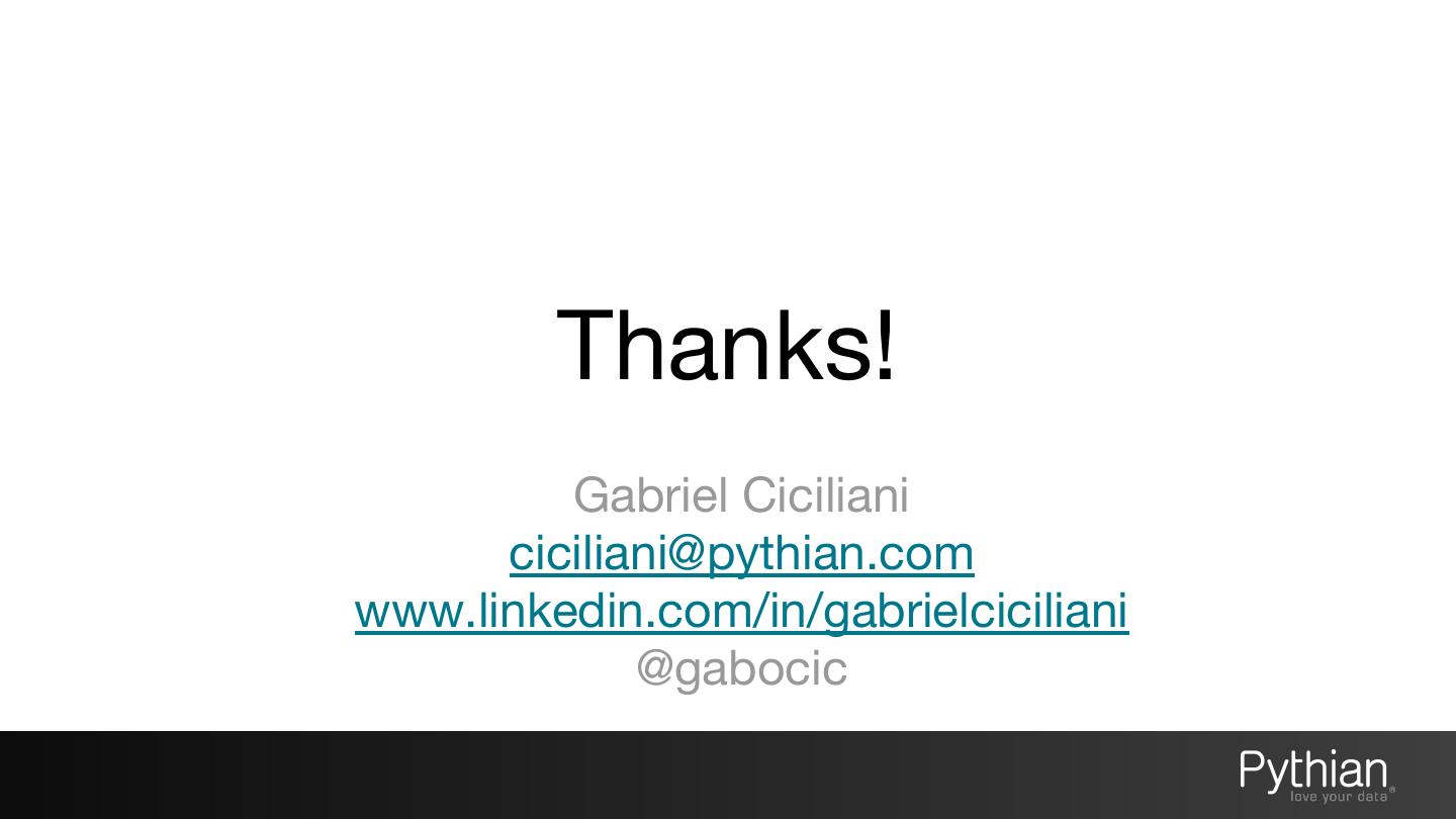 21 . Thanks! Gabriel Ciciliani ciciliani@pythian.com www.linkedin.com/in/gabrielciciliani @gabocic