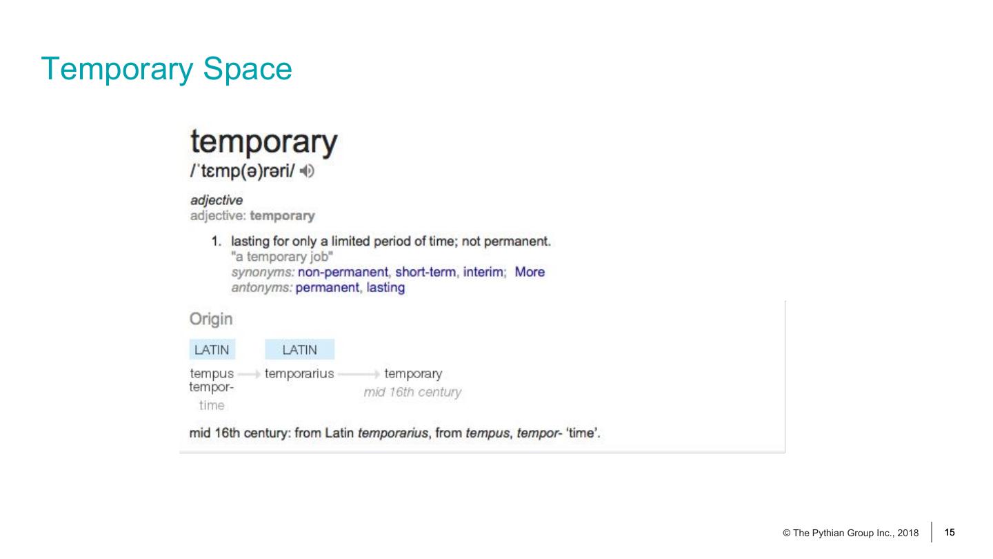 13 .Temporary Space © The Pythian Group Inc., 2018 15