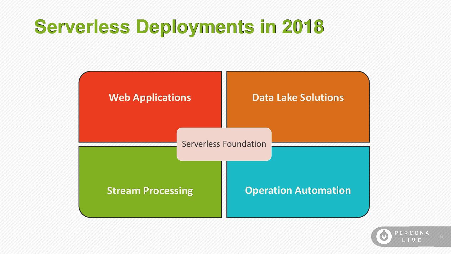 6 .Serverless Deployments in 2018 Web Applications Data Lake Solutions Serverless Foundation Stream Processing Operation Automation 6
