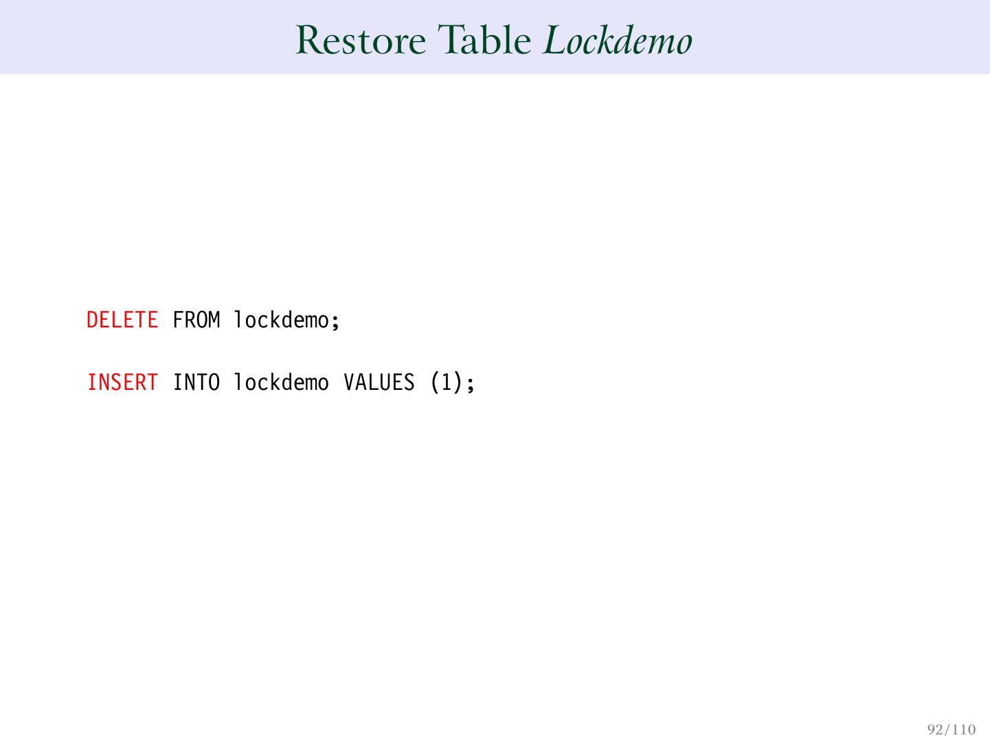 24 . Create and Populate Table lockdemo CREATE TABLE lockdemo (col int); INSERT INTO lockdemo VALUES (1); 24 / 110