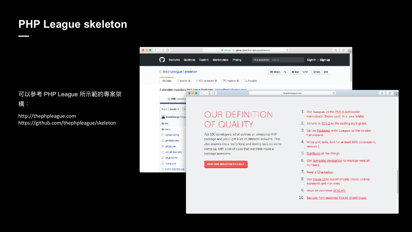 14 .PHP League skeleton — ݢ犥㷢ᘍ PHP League ಅ纈塅ጱ䌕礯礍 䯤物 http://thephpleague.com https://github.com/thephpleague/skeleton